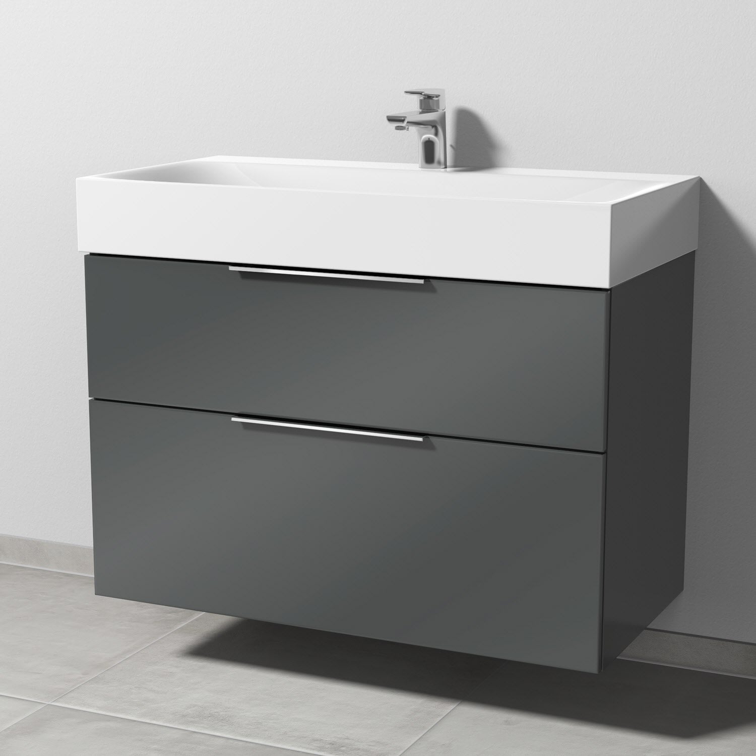 Sanipa 3way Waschtischunterbau für Stahl-Email-Waschtisch Silenio 90 cm, 2 Auszüge mit Aufsatzgriff