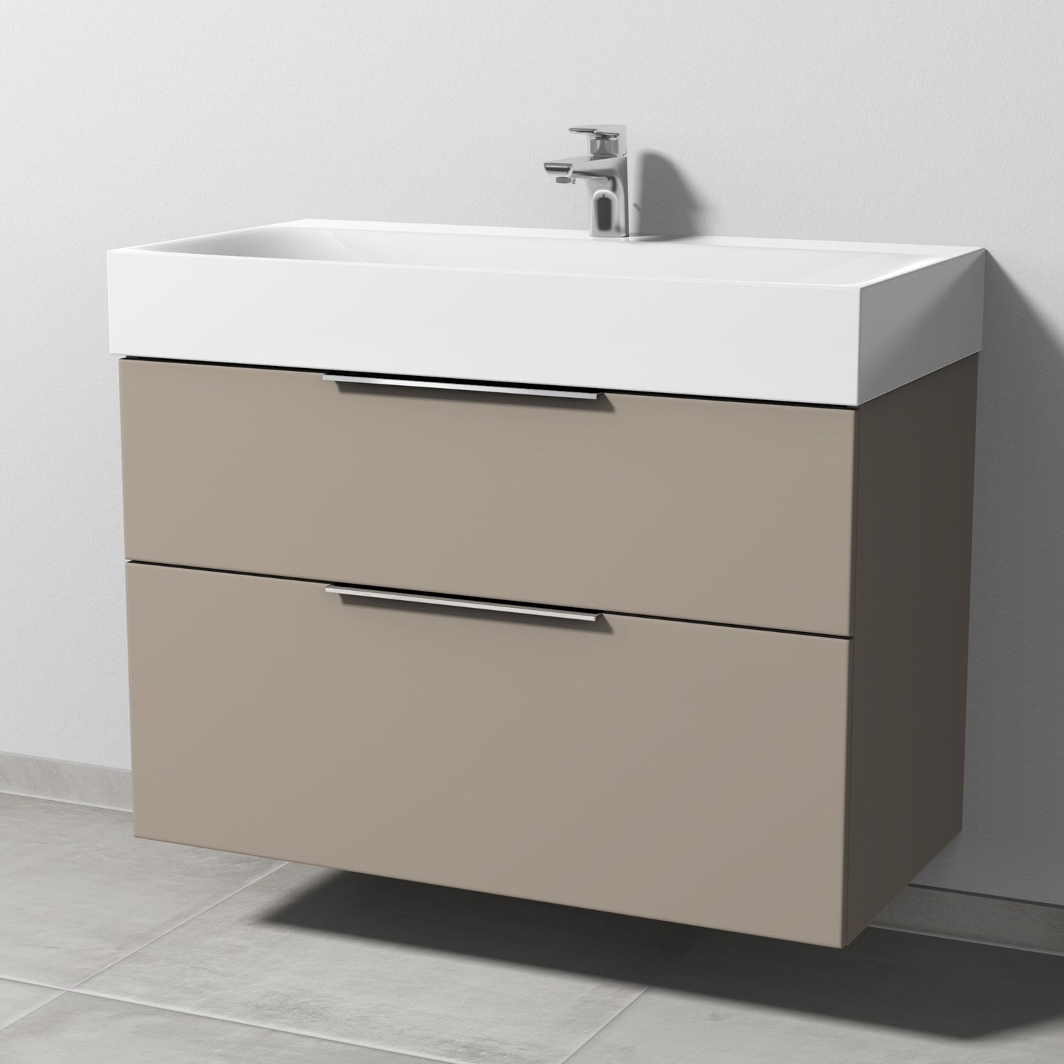 Sanipa 3way Waschtischunterbau für Stahl-Email-Waschtisch Silenio 90 cm, 2 Auszüge mit Aufsatzgriff