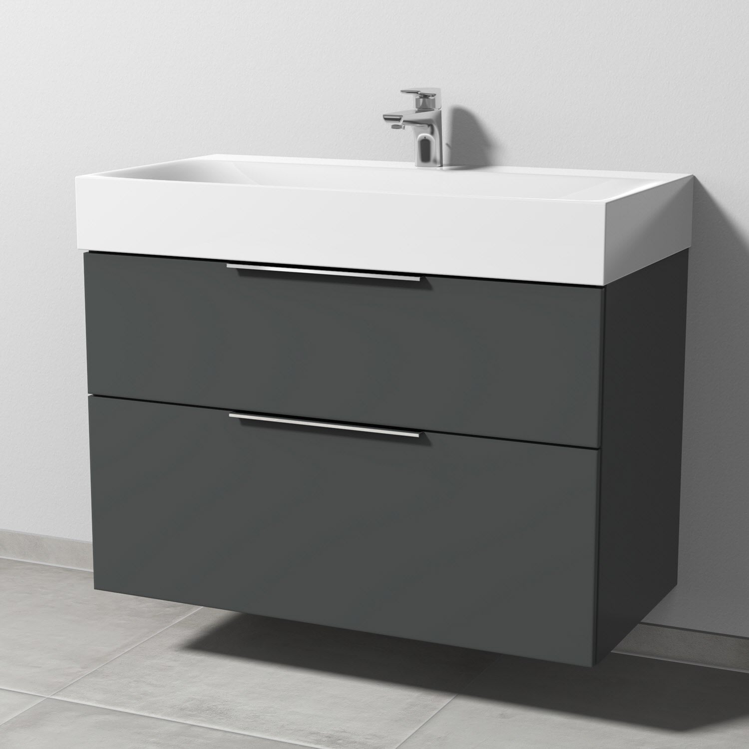 Sanipa 3way Waschtischunterbau für Stahl-Email-Waschtisch Silenio 90 cm, 2 Auszüge mit Aufsatzgriff