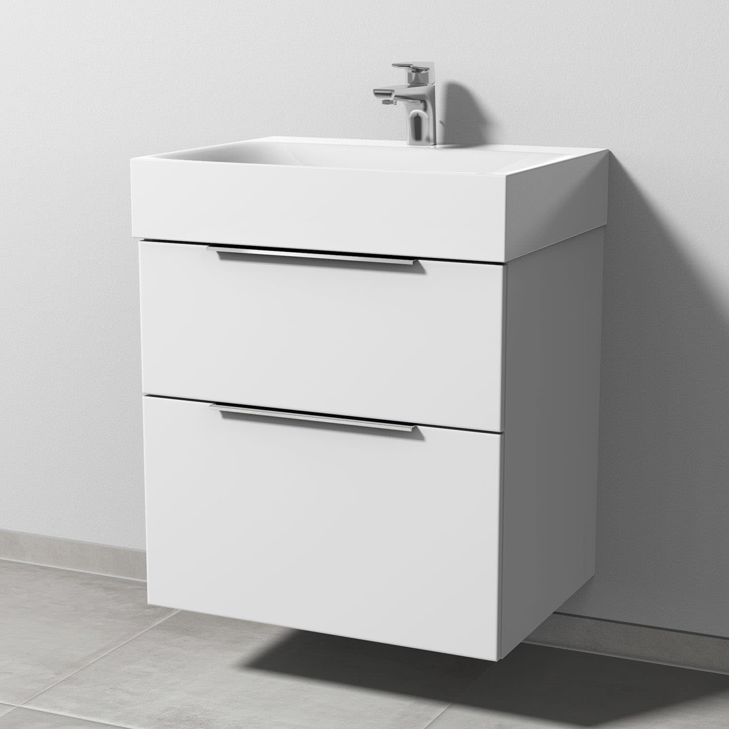 Sanipa 3way Waschtischunterbau für Stahl-Email-Waschtisch Silenio 60 cm, 2 Auszüge mit Aufsatzgriff