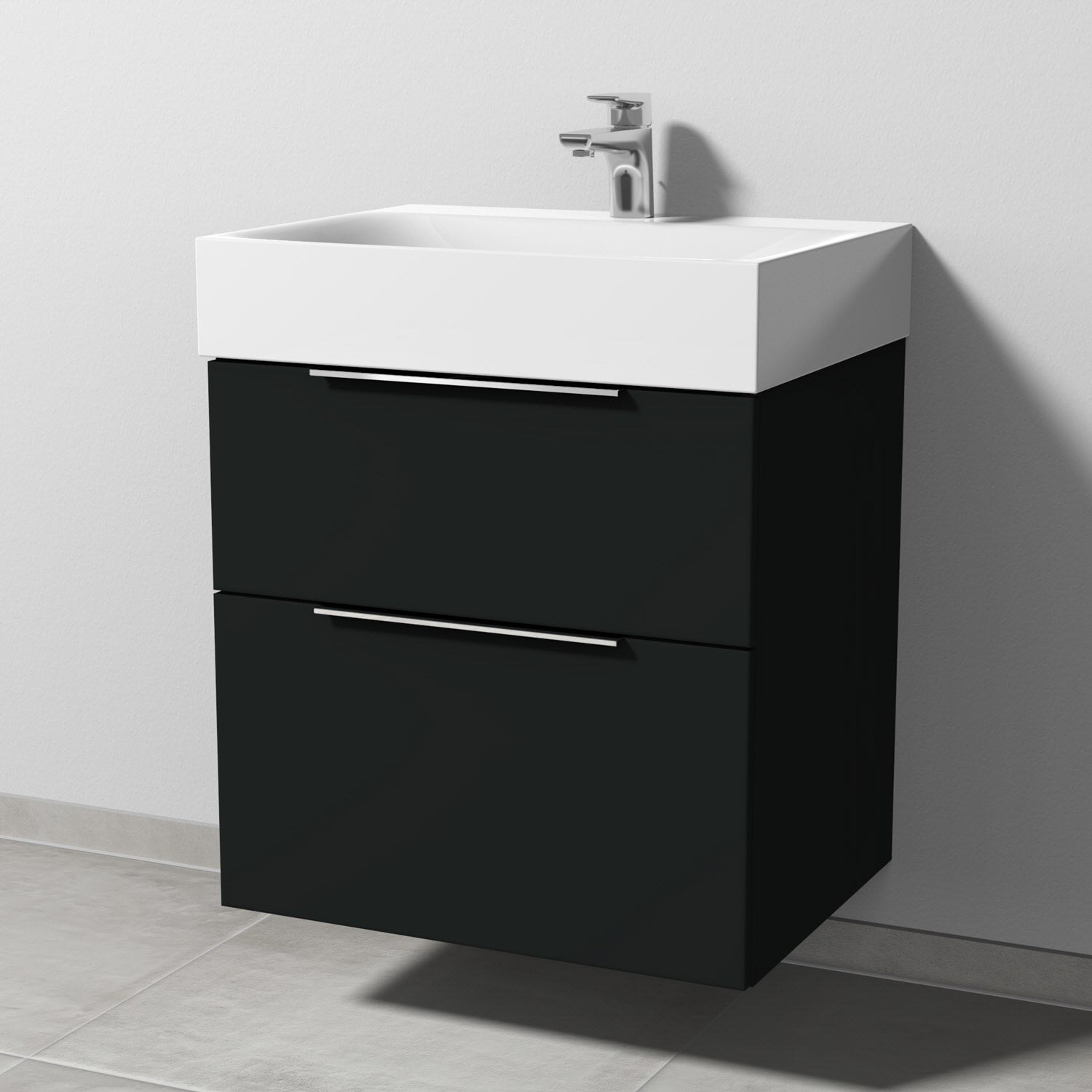 Sanipa 3way Waschtischunterbau für Stahl-Email-Waschtisch Silenio 60 cm, 2 Auszüge mit Aufsatzgriff