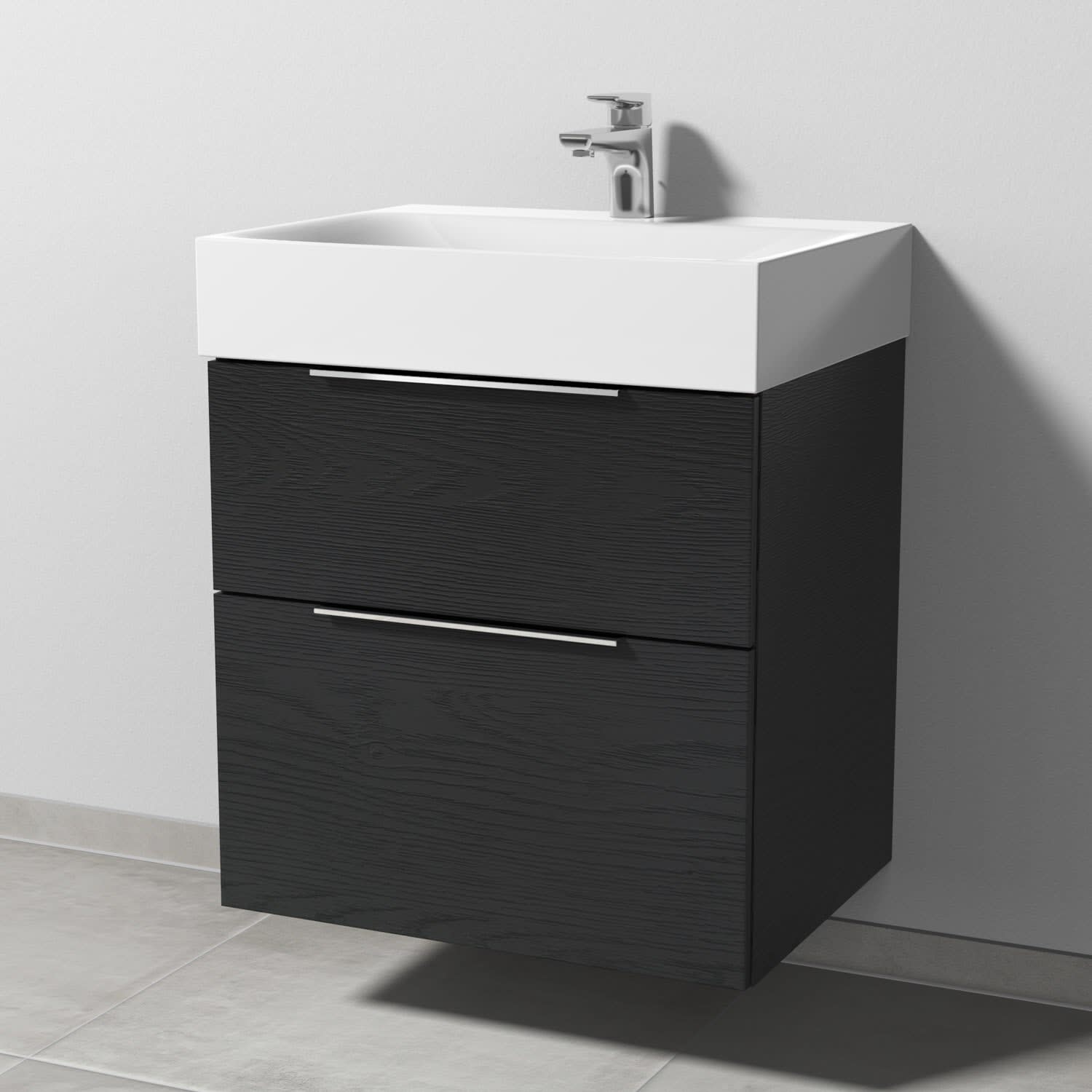 Sanipa 3way Waschtischunterbau für Stahl-Email-Waschtisch Silenio 60 cm, 2 Auszüge mit Aufsatzgriff