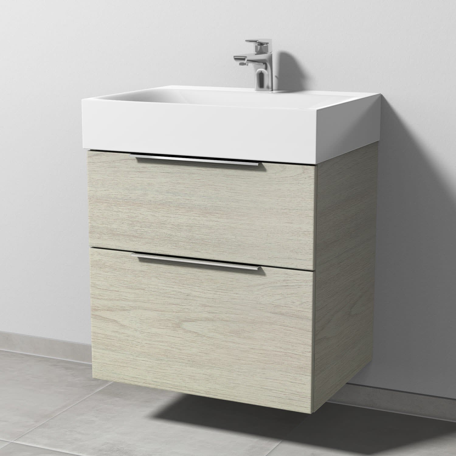 Sanipa 3way Waschtischunterbau für Stahl-Email-Waschtisch Silenio 60 cm, 2 Auszüge mit Aufsatzgriff