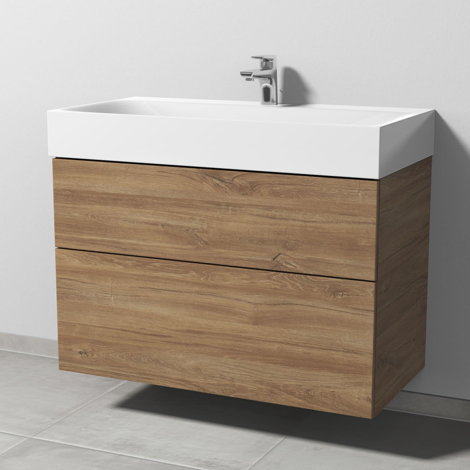 Sanipa 3way Waschtischunterbau für Stahl-Email-Waschtisch Silenio 90 cm, 2 Auszüge mit Push to open