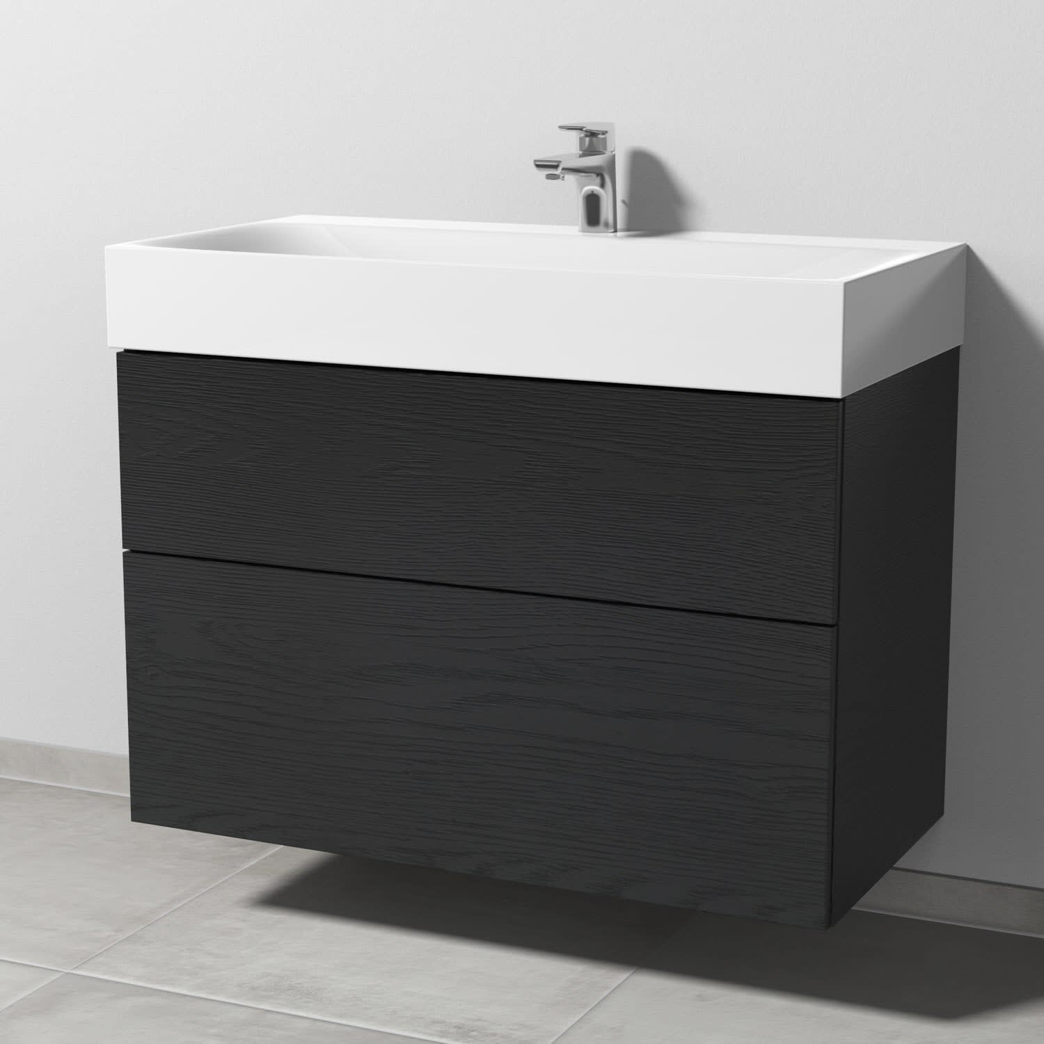 Sanipa 3way Waschtischunterbau für Stahl-Email-Waschtisch Silenio 90 cm, 2 Auszüge mit Push to open