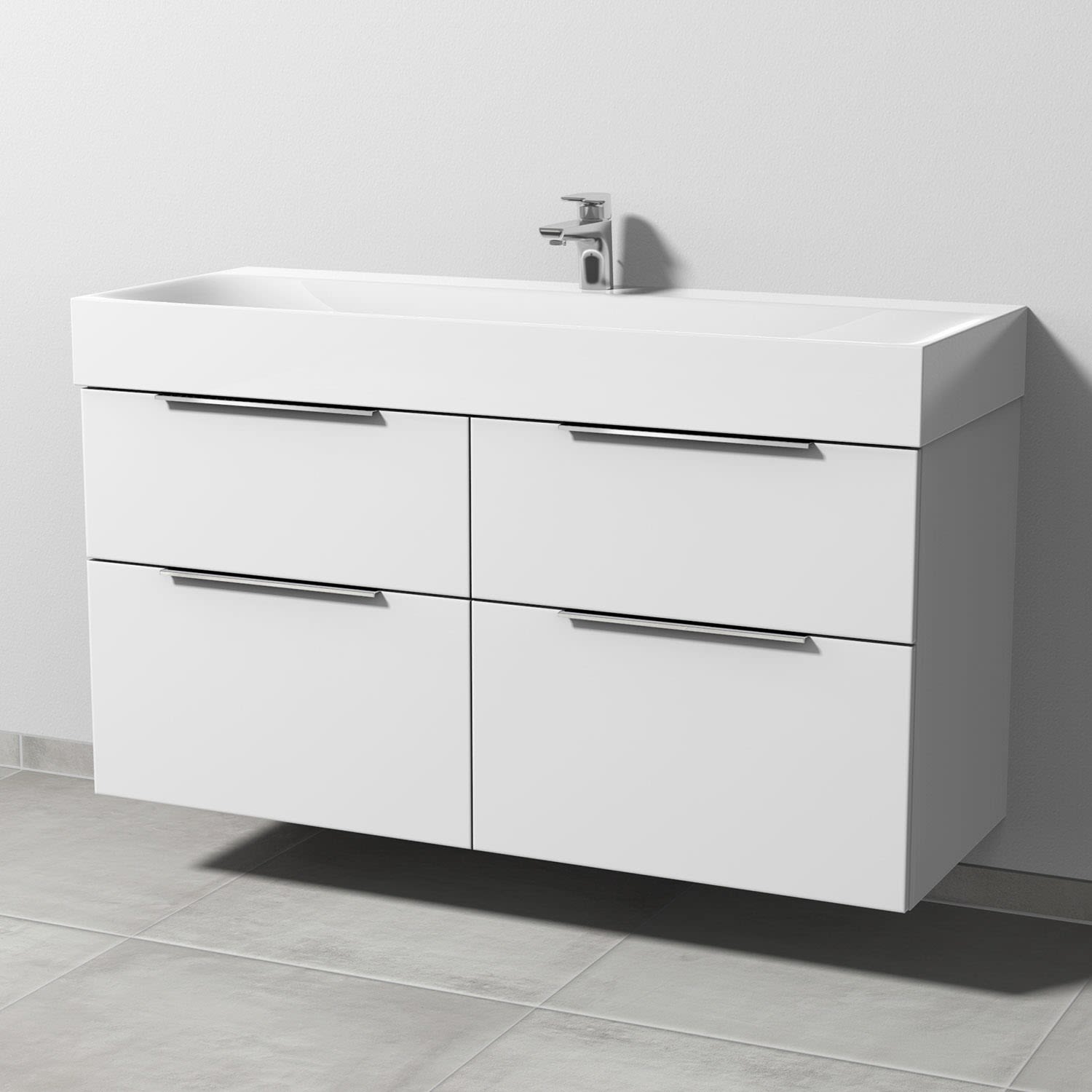 Sanipa 3way Waschtischunterbau für Stahl-Email-Waschtisch Silenio 120 cm, 4 Auszüge mit Aufsatzgriff