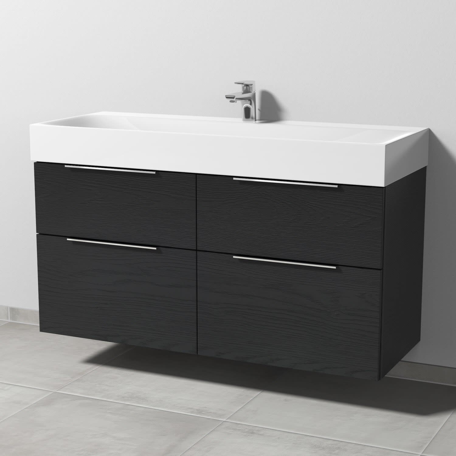 Sanipa 3way Waschtischunterbau für Stahl-Email-Waschtisch Silenio 120 cm, 4 Auszüge mit Aufsatzgriff