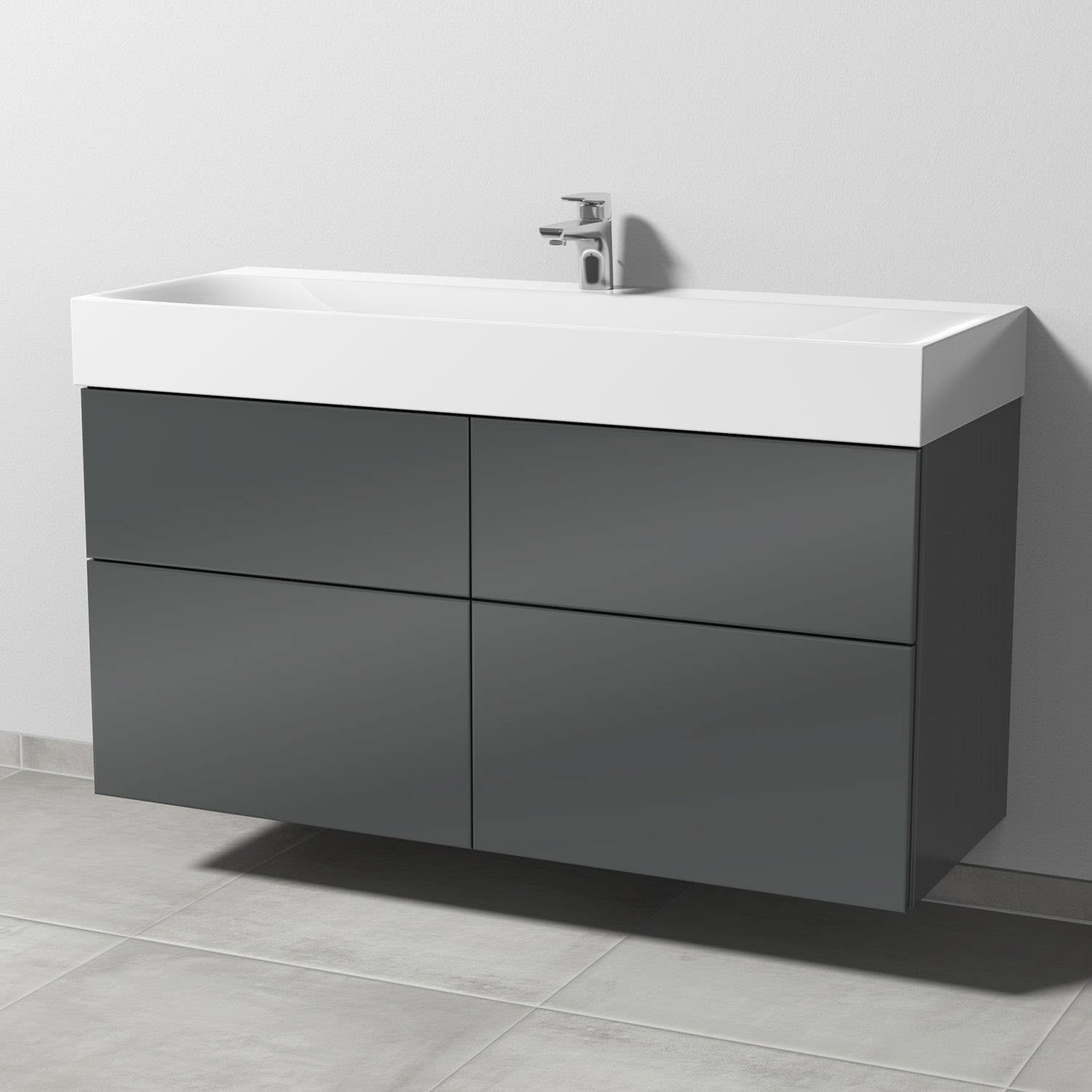 Sanipa 3way Waschtischunterbau für Stahl-Email-Waschtisch Silenio 120 cm, 4 Auszüge mit Push to open