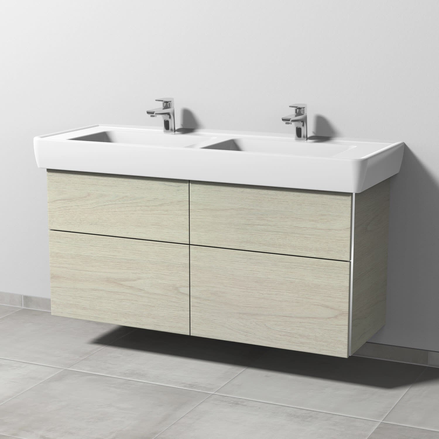 Sanipa 3way Waschtischunterbau für Keramik-Doppelwaschtisch Pro A 130 cm, 4 Auszüge mit Griffleisten