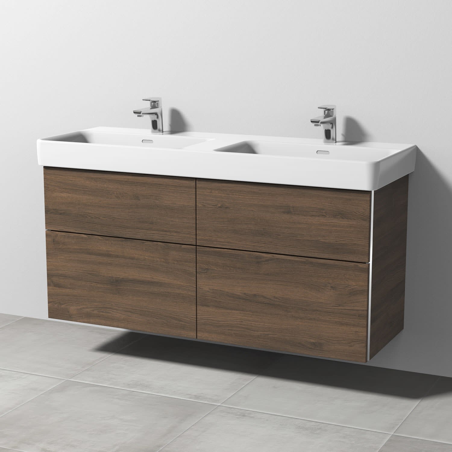 Sanipa 3way Waschtischunterbau für Keramik-Doppelwaschtisch Pro S 130 cm, 4 Auszüge mit Griffleisten