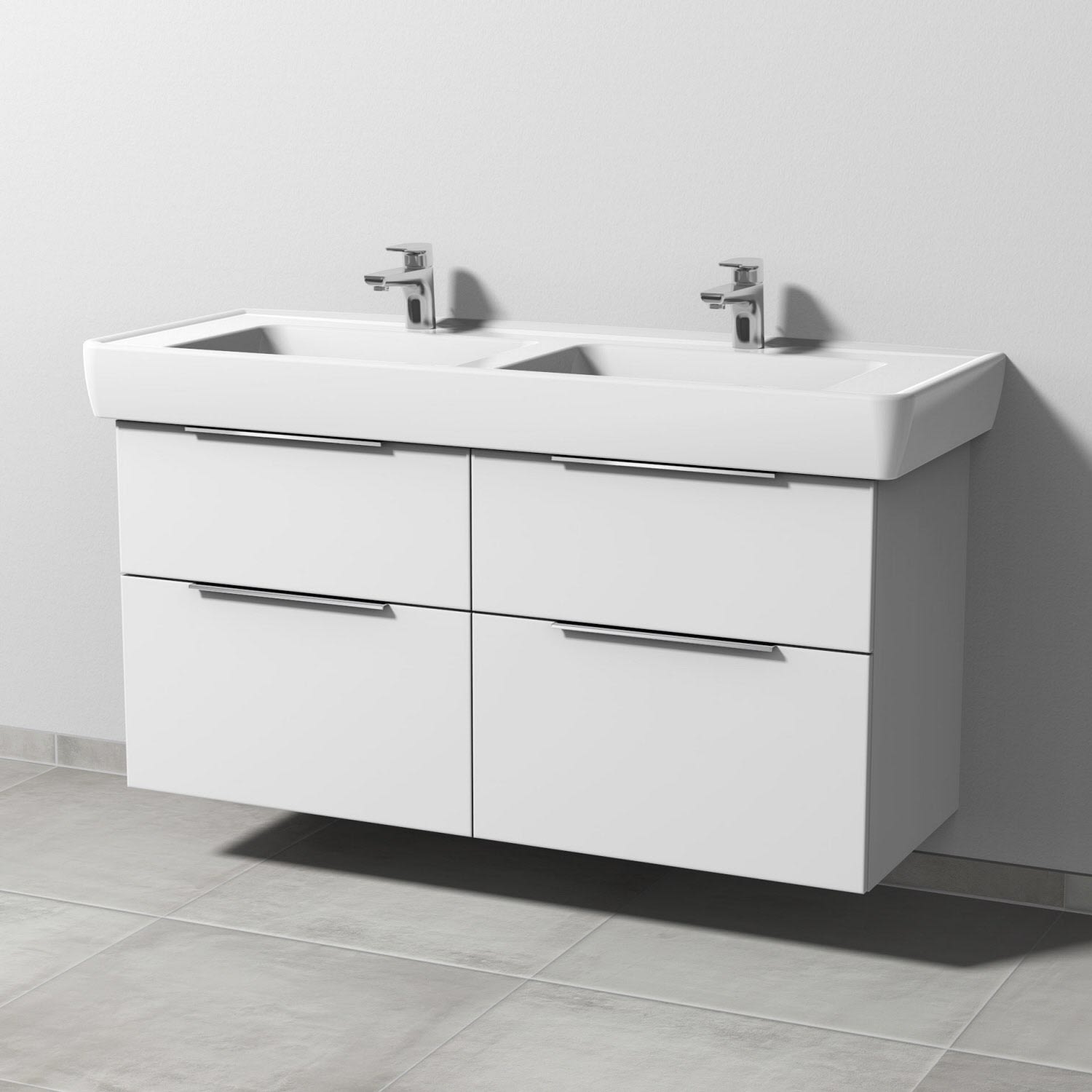 Sanipa 3way Waschtischunterbau für Keramik-Doppelwaschtisch Pro A 130 cm, 4 Auszüge mit Aufsatzgriff