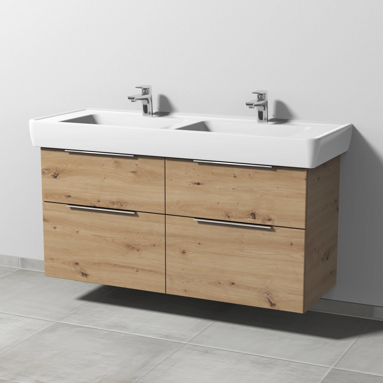 Sanipa 3way Waschtischunterbau für Keramik-Doppelwaschtisch Pro A 130 cm, 4 Auszüge mit Aufsatzgriff