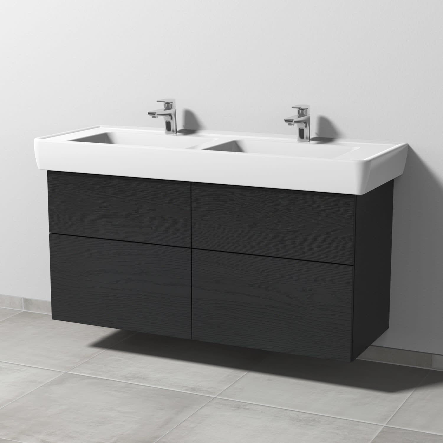 Sanipa 3way Waschtischunterbau für Keramik-Doppelwaschtisch Pro A 130 cm, 4 Auszüge mit Push to open