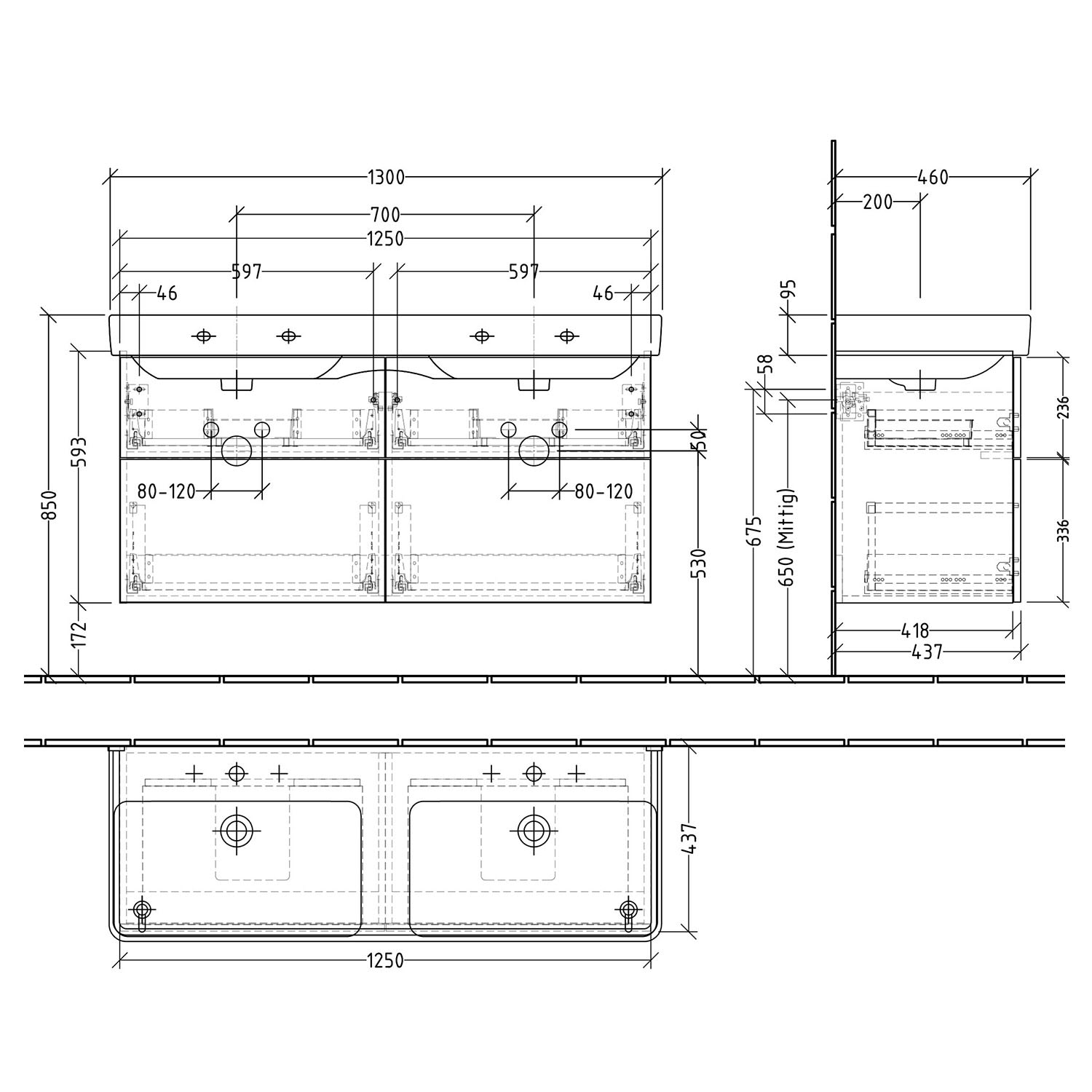 - Laufen Keramik-Doppelwaschtisch Pro S