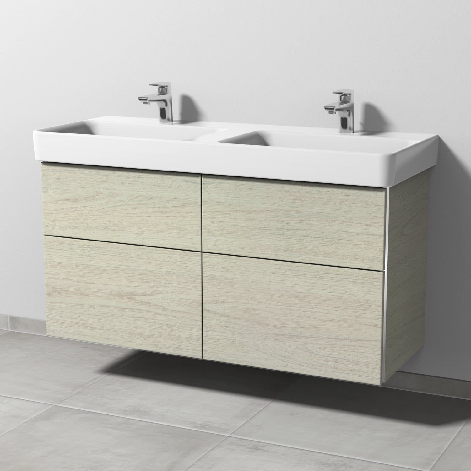 Sanipa 3way Waschtischunterbau für Keramik-Doppelwaschtisch Pro S 120 cm, 4 Auszüge mit Griffleisten
