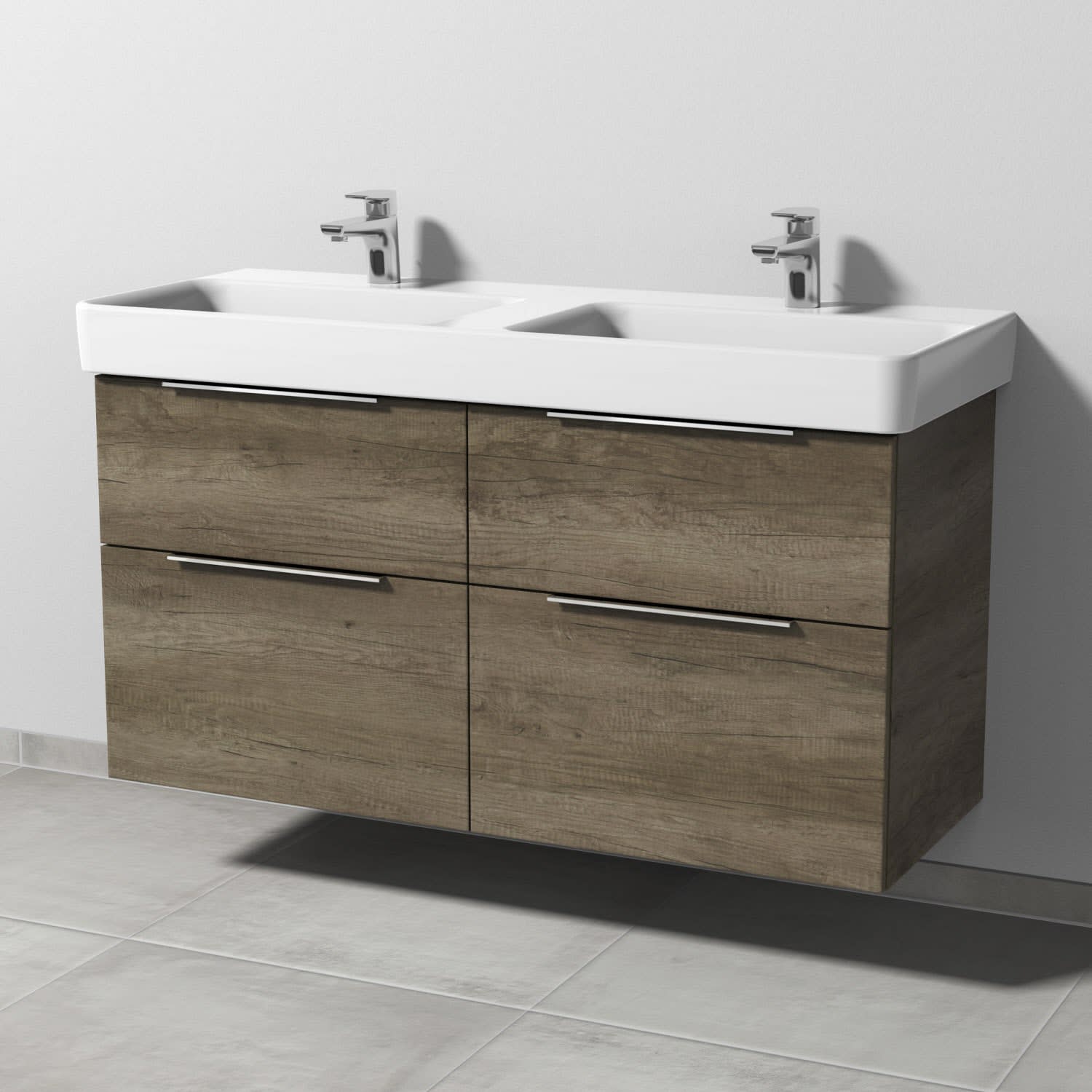 Sanipa 3way Waschtischunterbau für Keramik-Doppelwaschtisch Pro S 120 cm, 4 Auszüge mit Aufsatzgriff