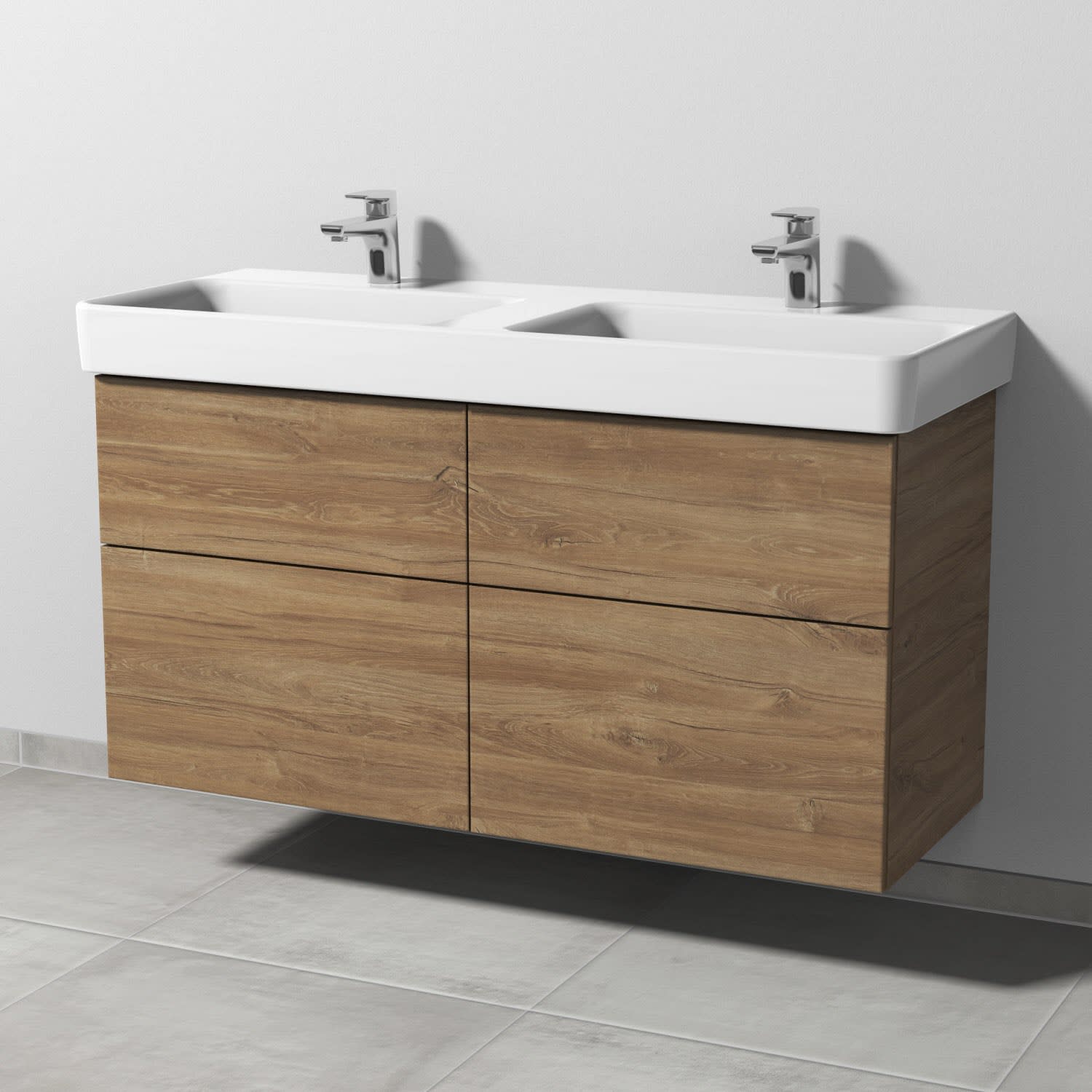 Sanipa 3way Waschtischunterbau für Keramik-Doppelwaschtisch Pro S 120 cm, 4 Auszüge mit Push to open