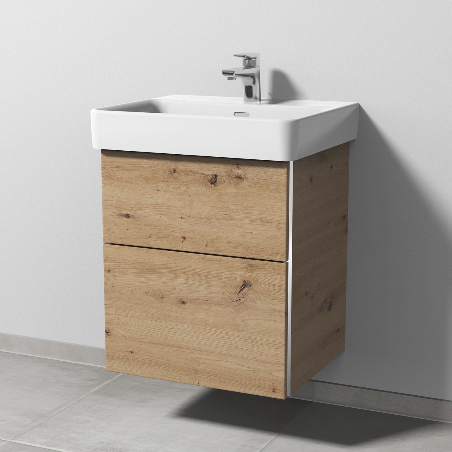 Sanipa 3way Waschtischunterbau für Keramik-Waschtisch Pro S 55 cm, 2 Auszüge mit Griffleisten