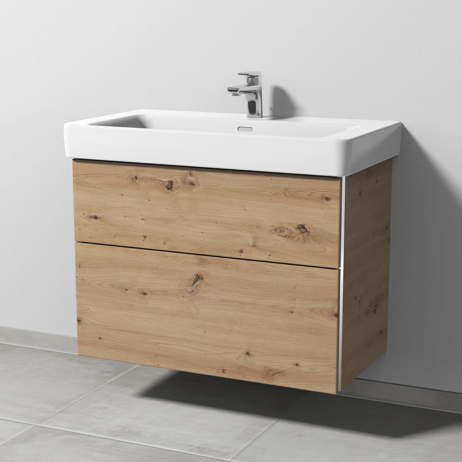 Sanipa 3way Waschtischunterbau für Keramik-Waschtisch Pro S 85 cm, 2 Auszüge mit Griffleisten