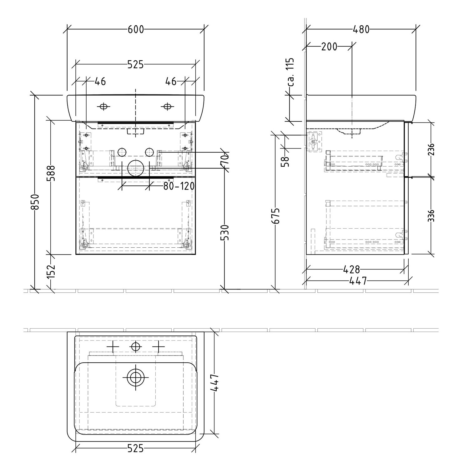 Sanipa 3way Waschtischunterbau für Keramik-Waschtisch Pro A 60 cm, 2 Auszüge mit Aufsatzgriff