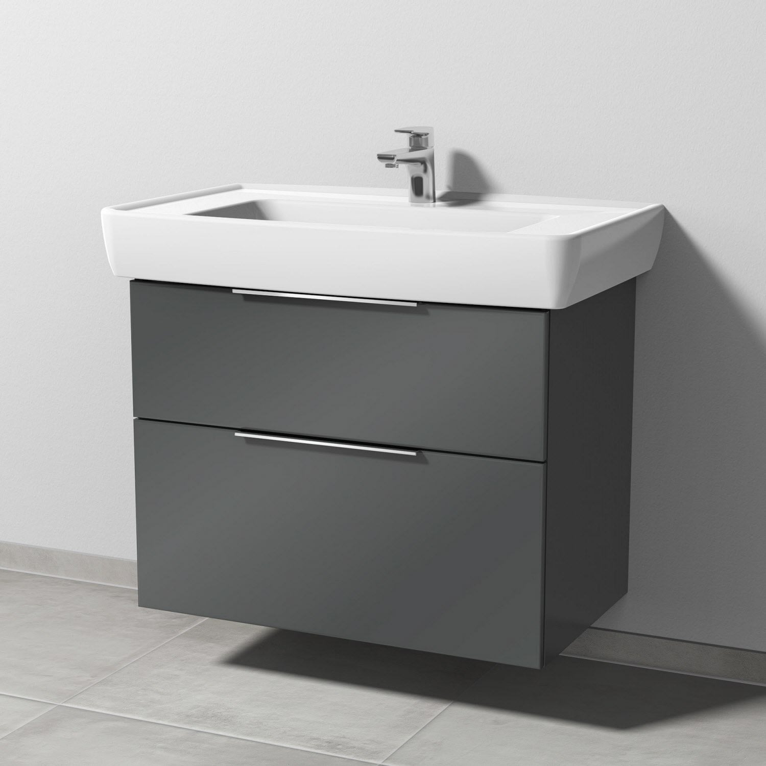 Sanipa 3way Waschtischunterbau für Keramik-Waschtisch Pro A 85 cm, 2 Auszüge mit Aufsatzgriff