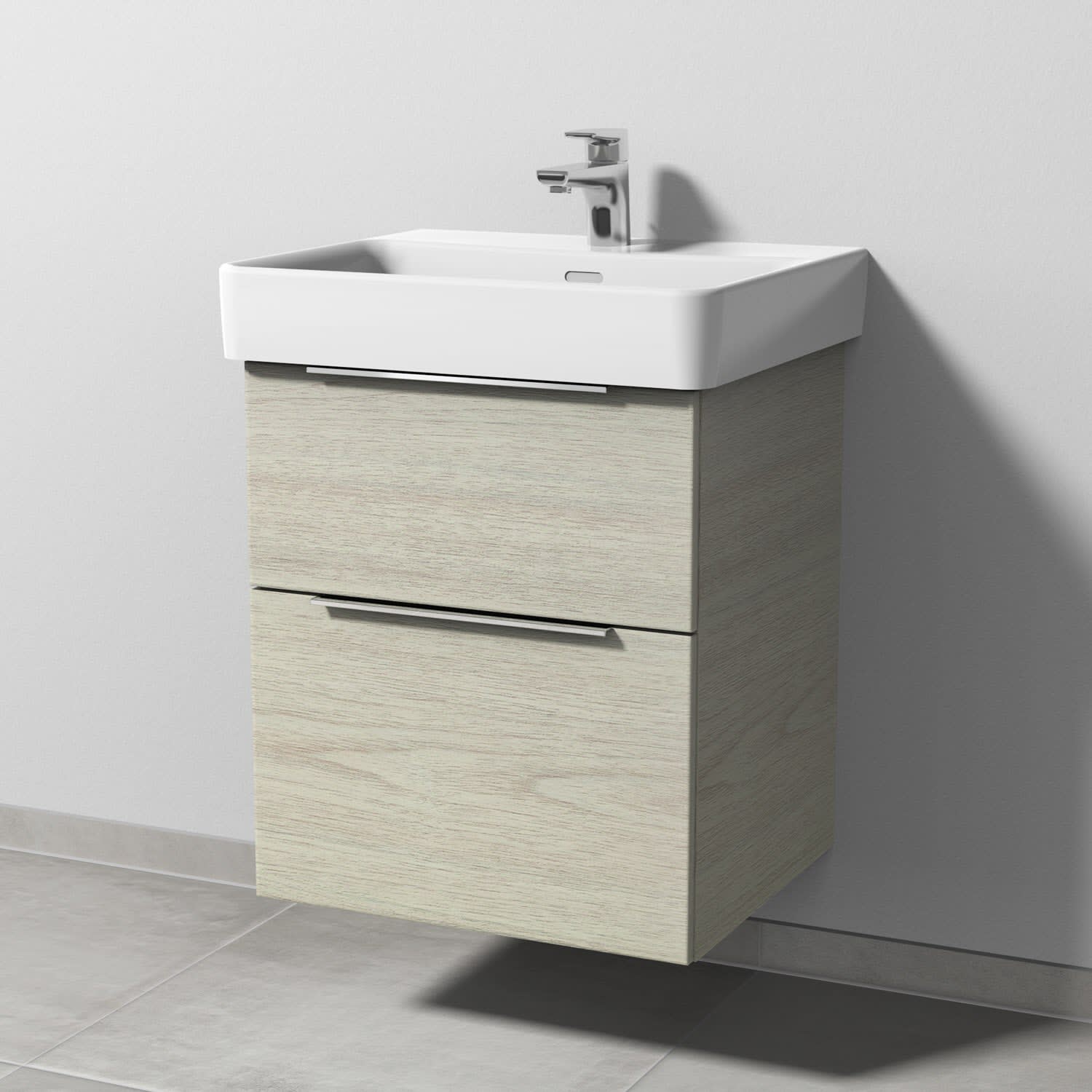Sanipa 3way Waschtischunterbau für Keramik-Waschtisch Pro S 55 cm, 2 Auszüge mit Aufsatzgriff