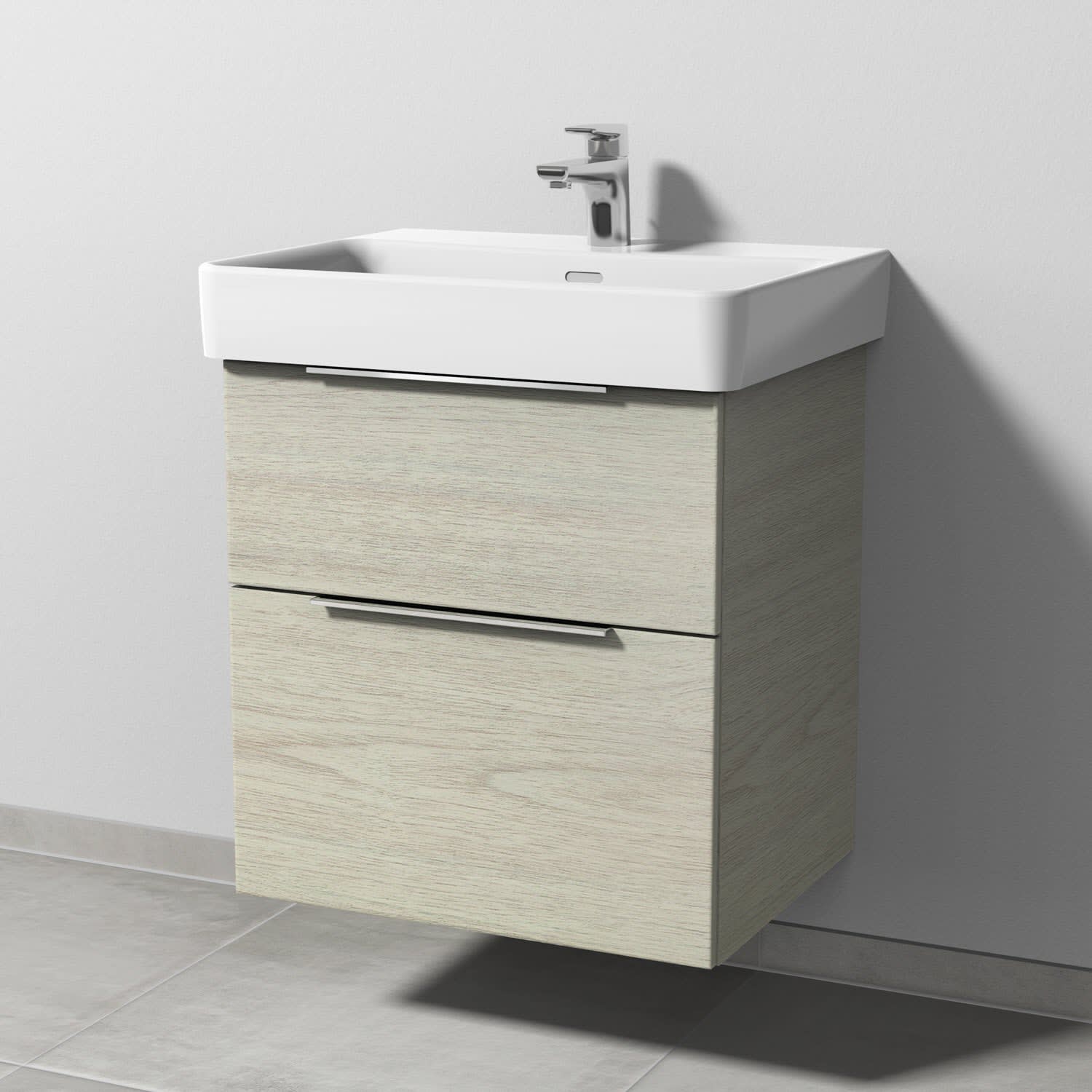Sanipa 3way Waschtischunterbau für Keramik-Waschtisch Pro S 60 cm, 2 Auszüge mit Aufsatzgriff