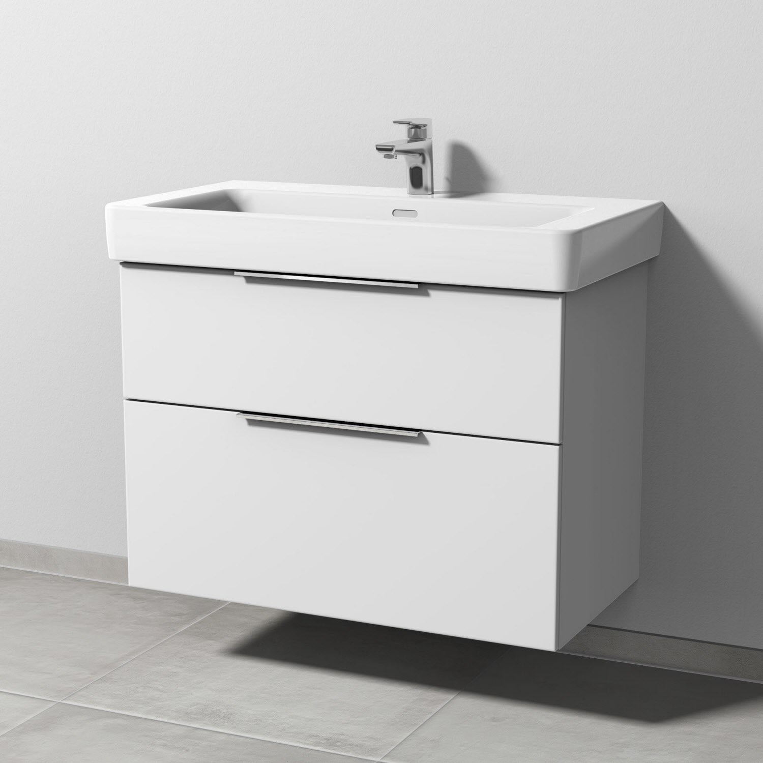 Sanipa 3way Waschtischunterbau für Keramik-Waschtisch Pro S 85 cm, 2 Auszüge mit Aufsatzgriff