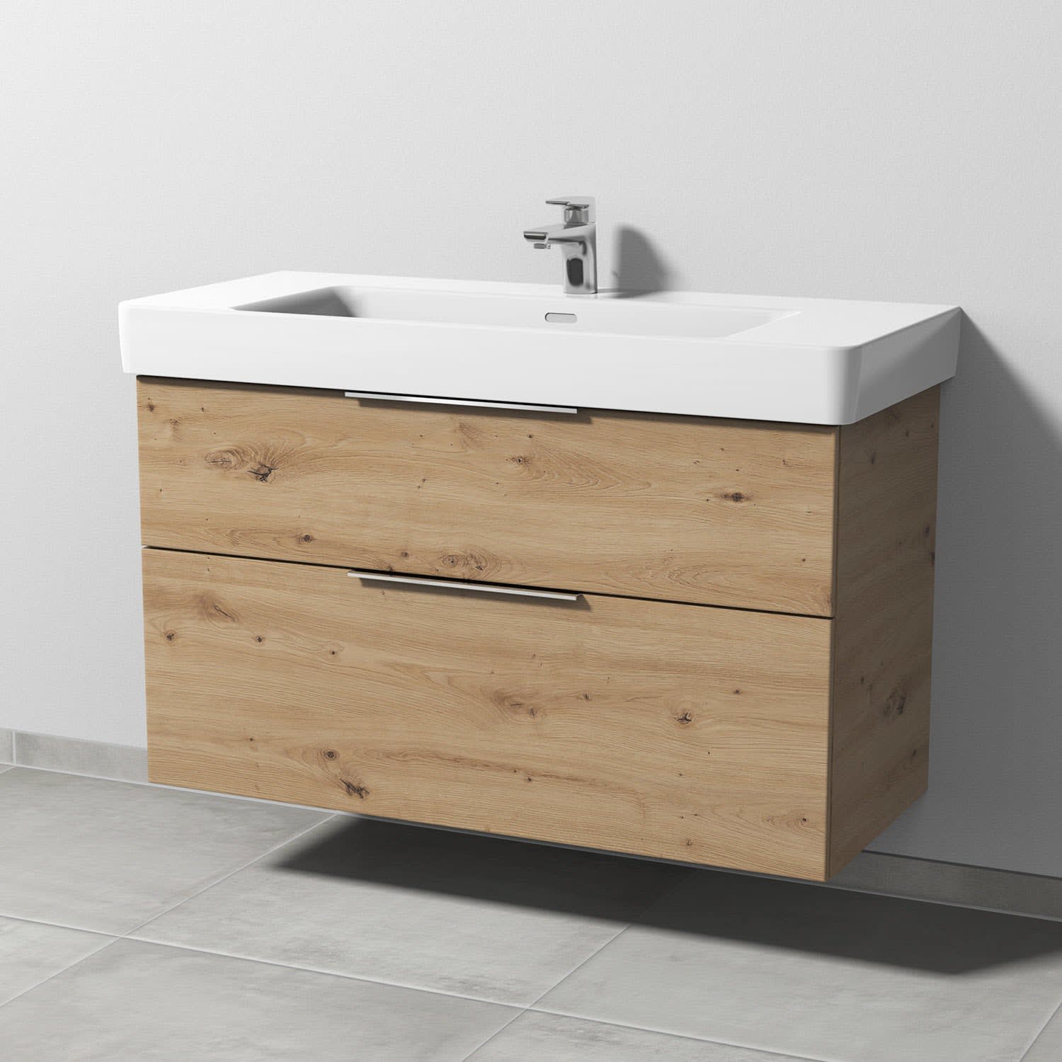 Sanipa 3way Waschtischunterbau für Keramik-Waschtisch Pro S 105 cm, 2 Auszüge mit Aufsatzgriff