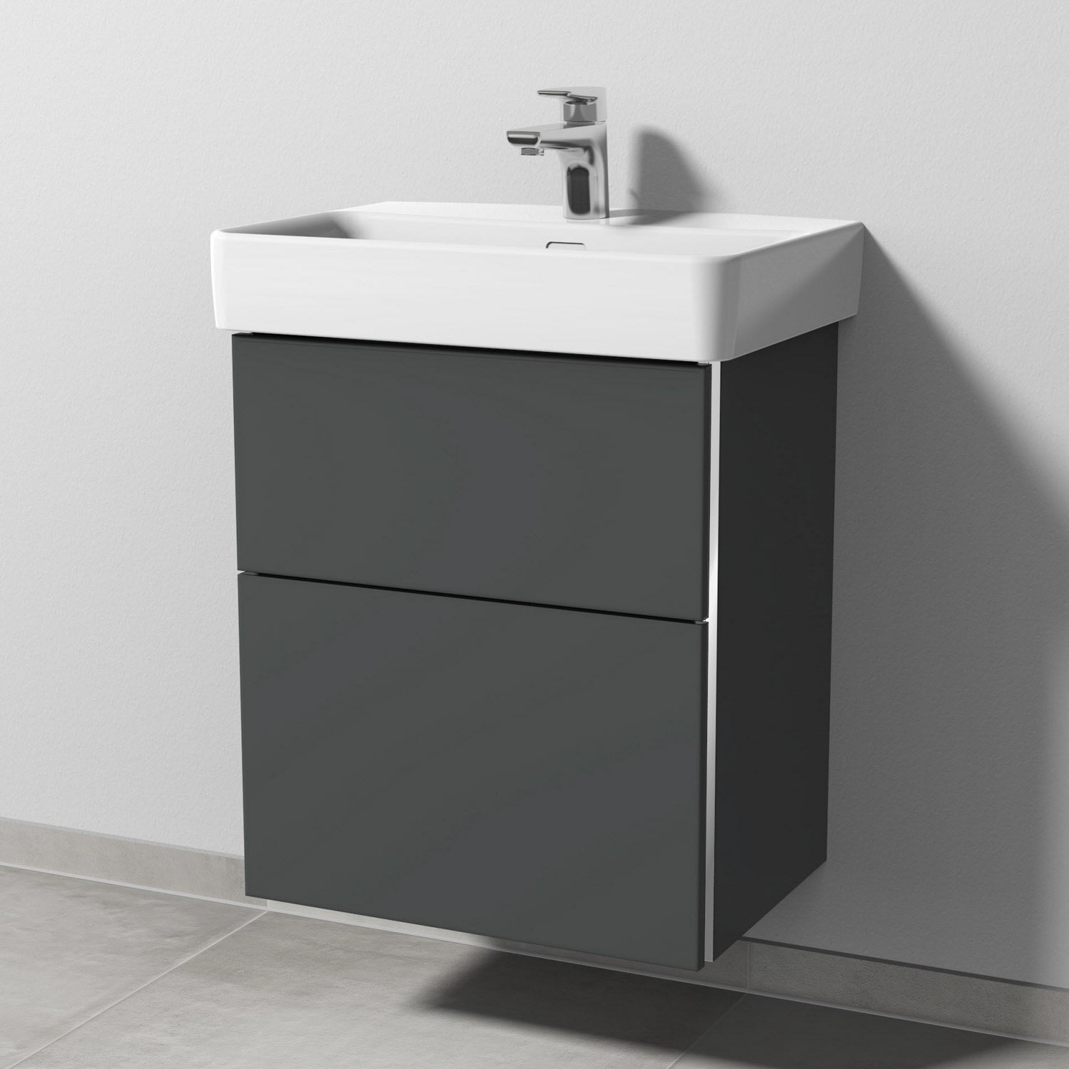 Sanipa 3way Waschtischunterbau für Keramik-Waschtisch Pro S 55 cm, 2 Auszüge mit Griffleisten, geringere Tiefe