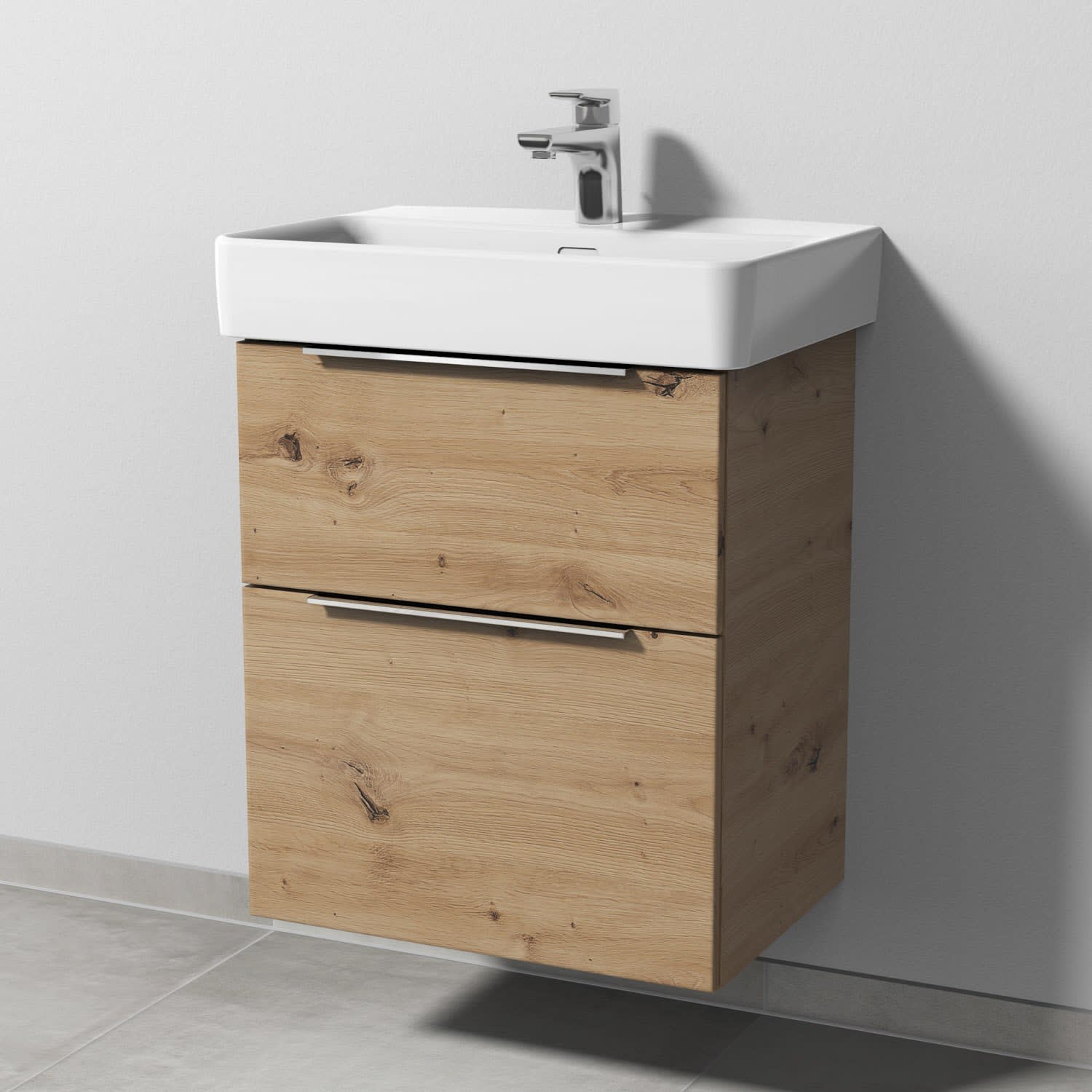 Sanipa 3way Waschtischunterbau für Keramik-Waschtisch Pro S 55 cm, 2 Auszüge mit Aufsatzgriff, geringere Tiefe