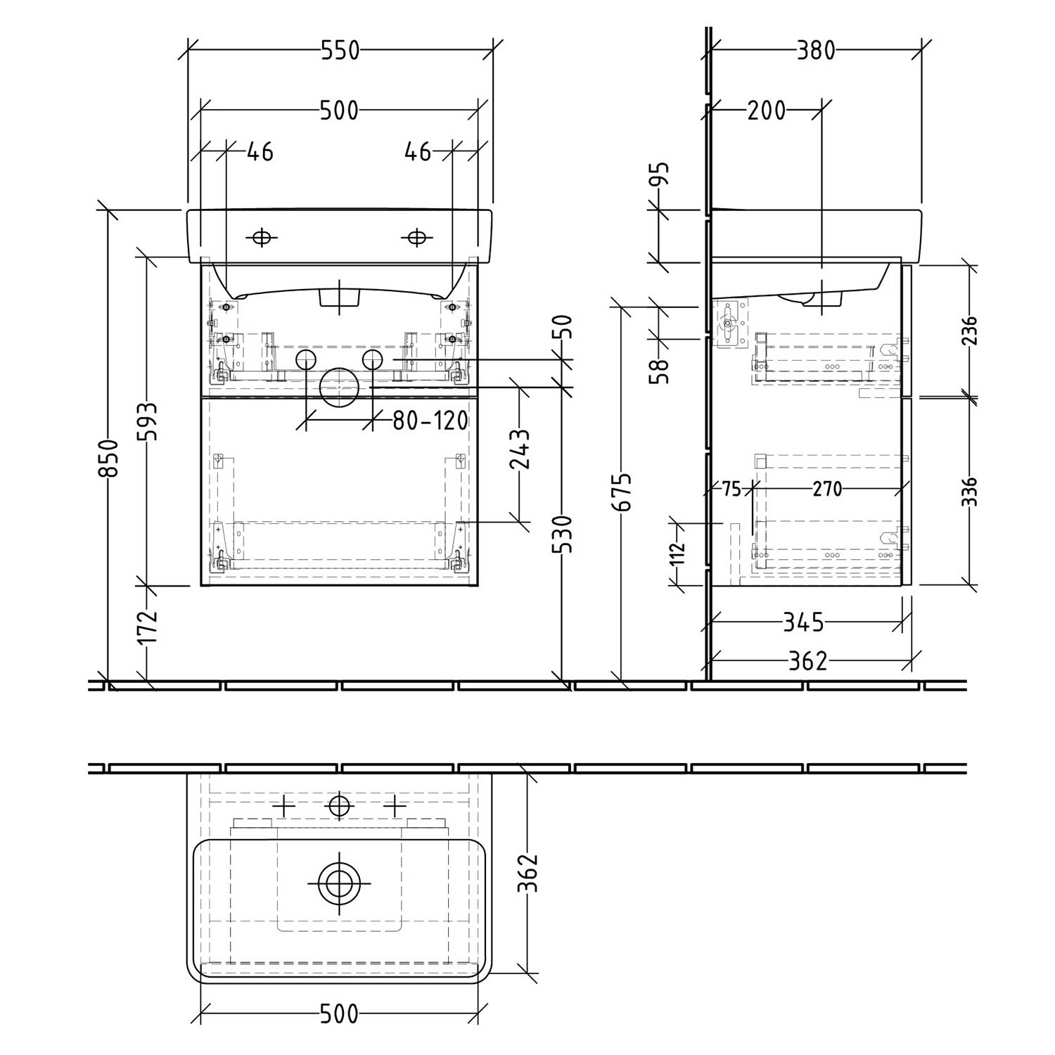 - oberer Auszug mit eckigem Siphonausschnitt