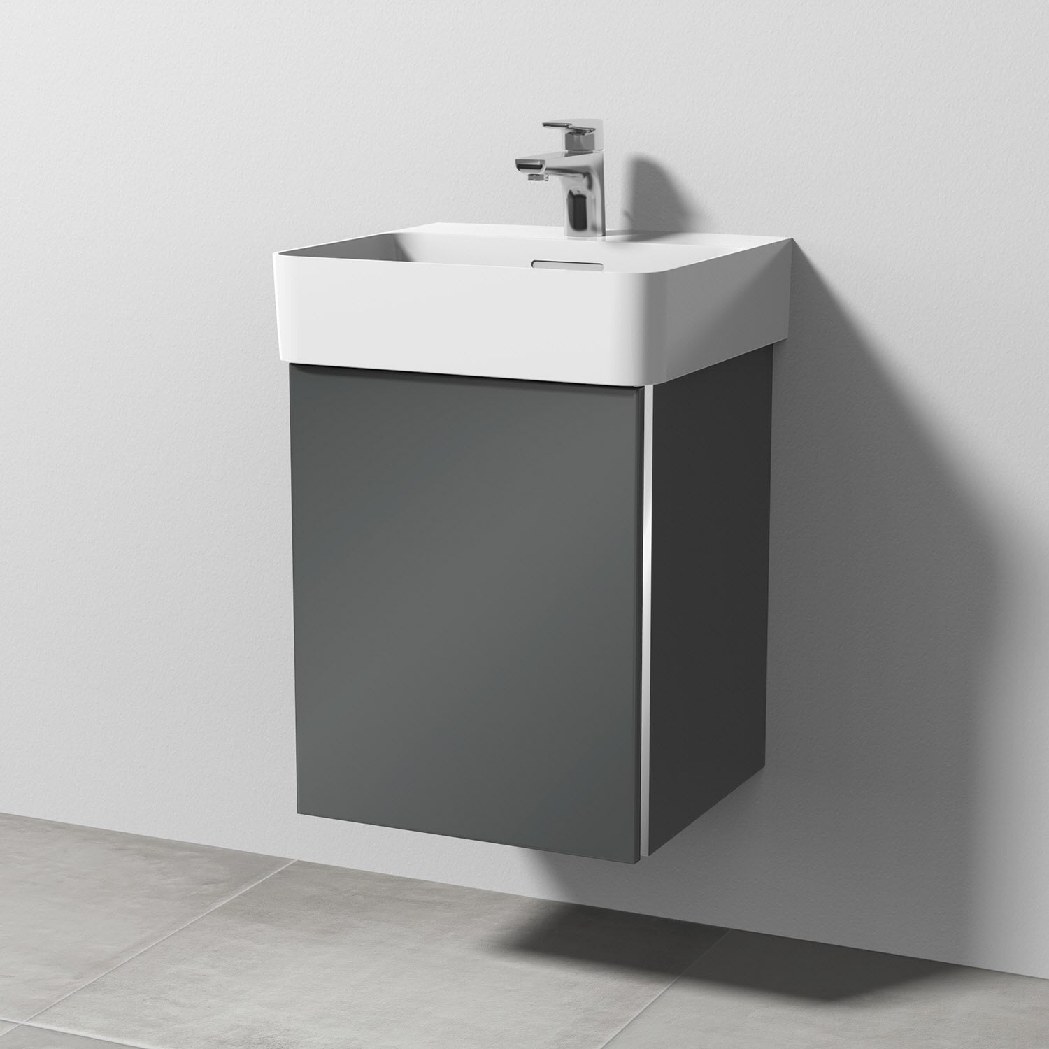 Sanipa 3way Waschtischunterbau für Keramik-Waschtisch Val 45 cm, 1 Tür, Anschlag links, mit Griffleiste