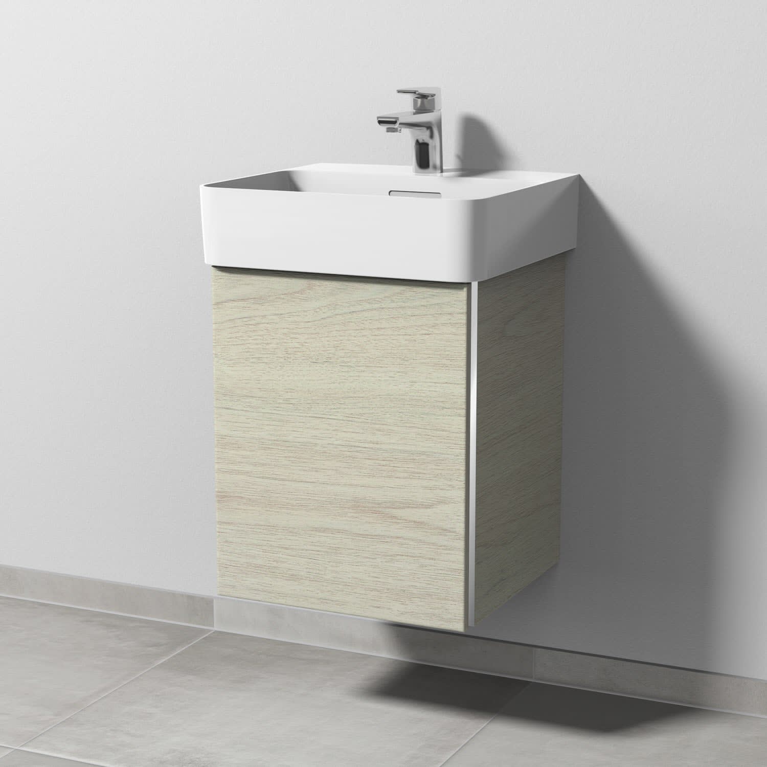 Sanipa 3way Waschtischunterbau für Keramik-Waschtisch Val 45 cm, 1 Tür, Anschlag links, mit Griffleiste