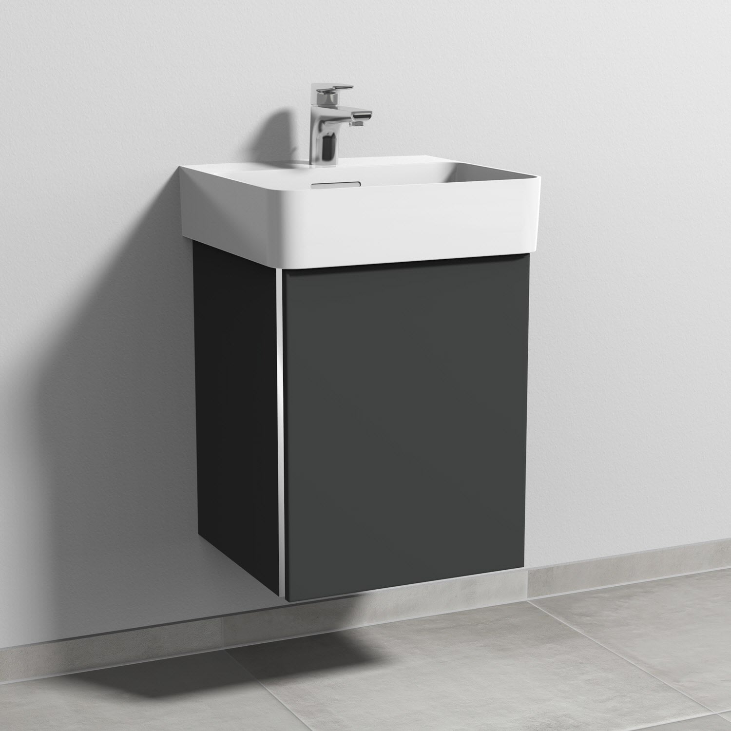 Sanipa 3way Waschtischunterbau für Keramik-Waschtisch Val 45 cm, 1 Tür, Anschlag rechts, mit Griffleiste