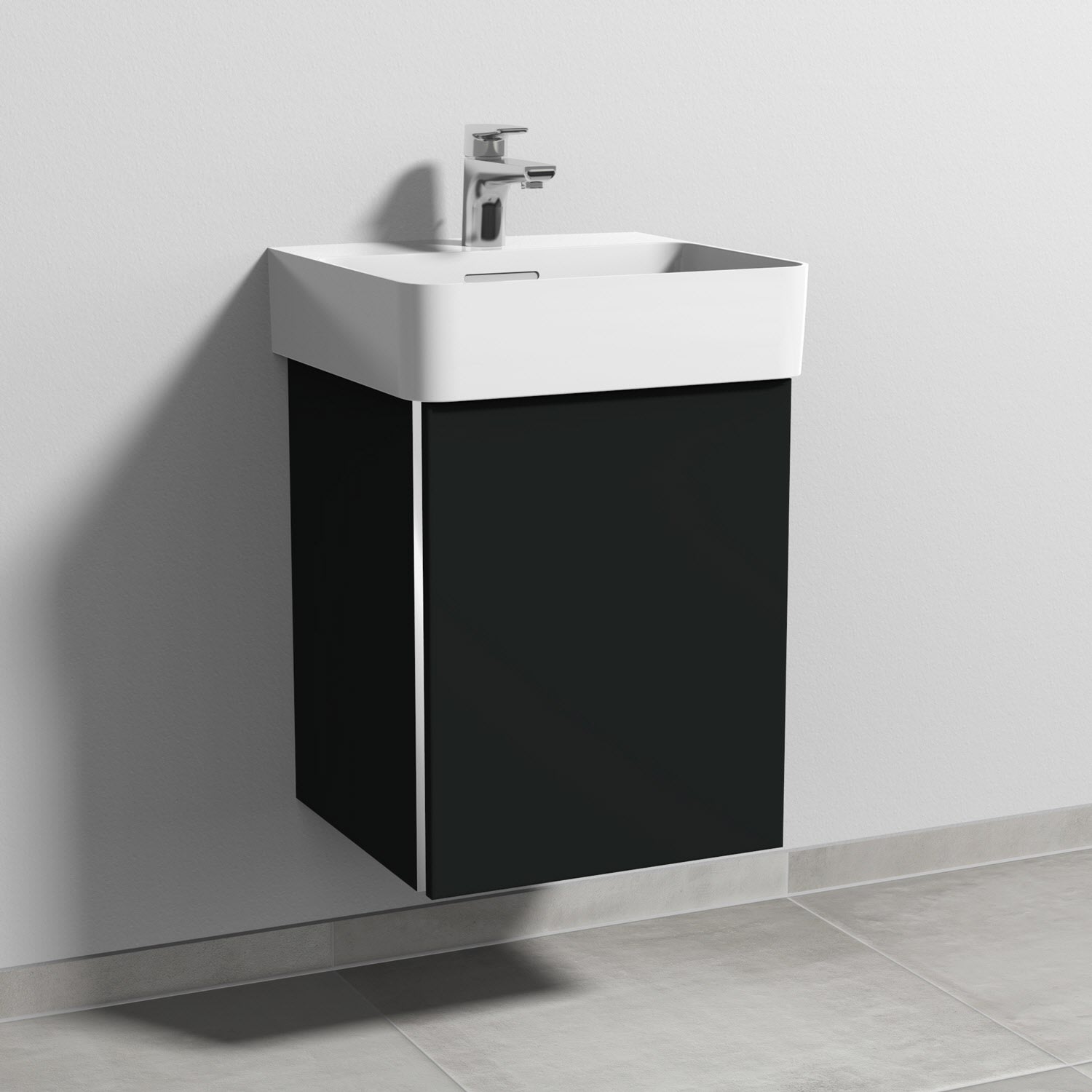 Sanipa 3way Waschtischunterbau für Keramik-Waschtisch Val 45 cm, 1 Tür, Anschlag rechts, mit Griffleiste