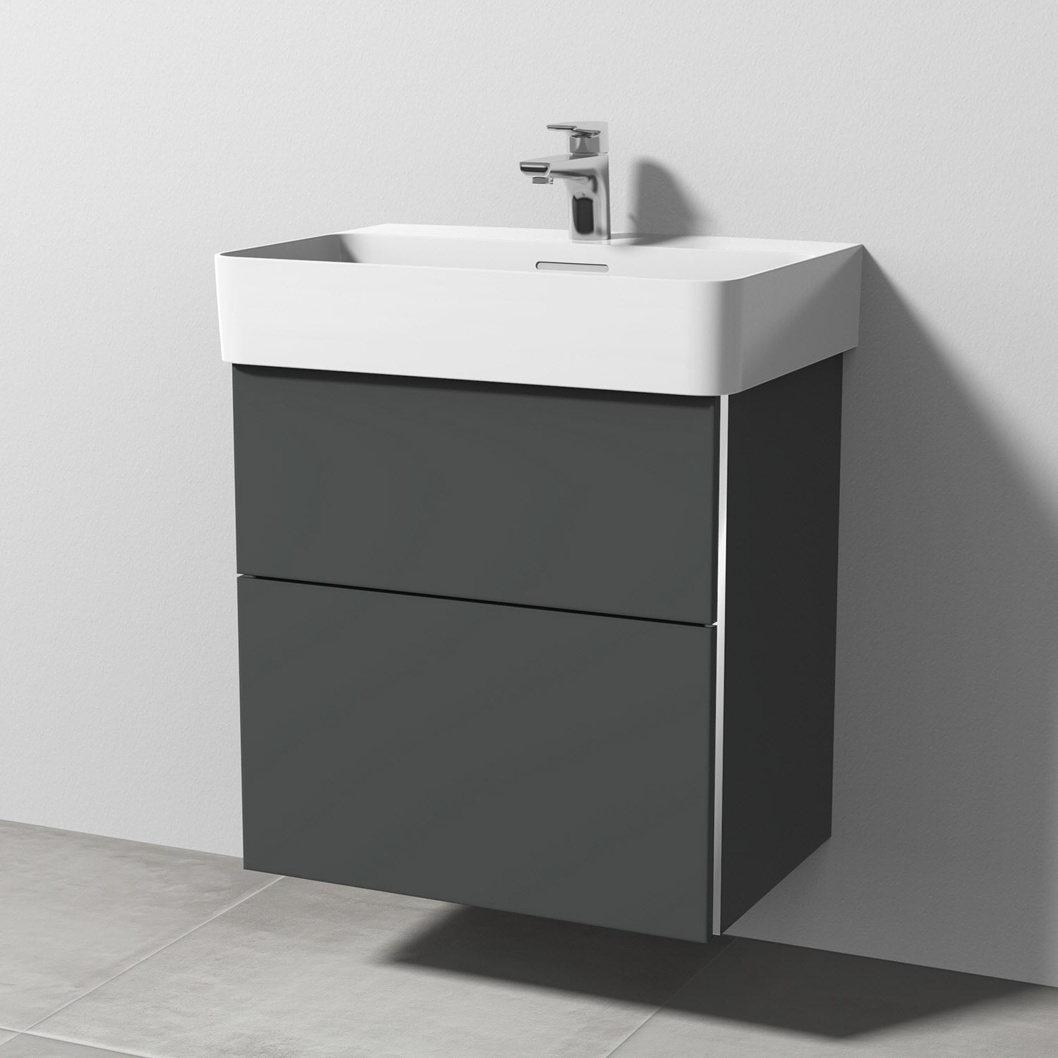 Sanipa 3way Waschtischunterbau für Keramik-Waschtisch Val 60 cm, 2 Auszüge mit Griffleisten