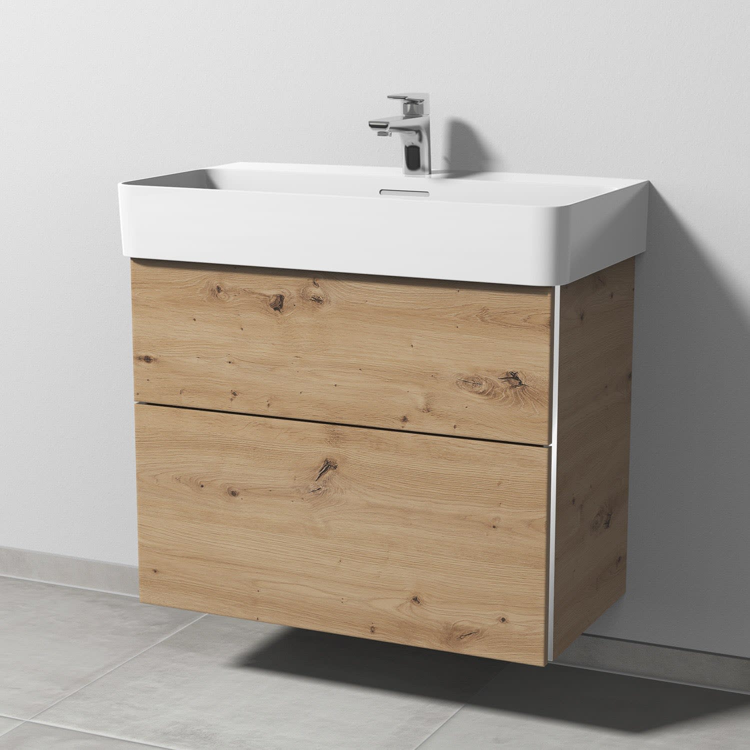 Sanipa 3way Waschtischunterbau für Keramik-Waschtisch Val 75 cm, 2 Auszüge mit Griffleisten