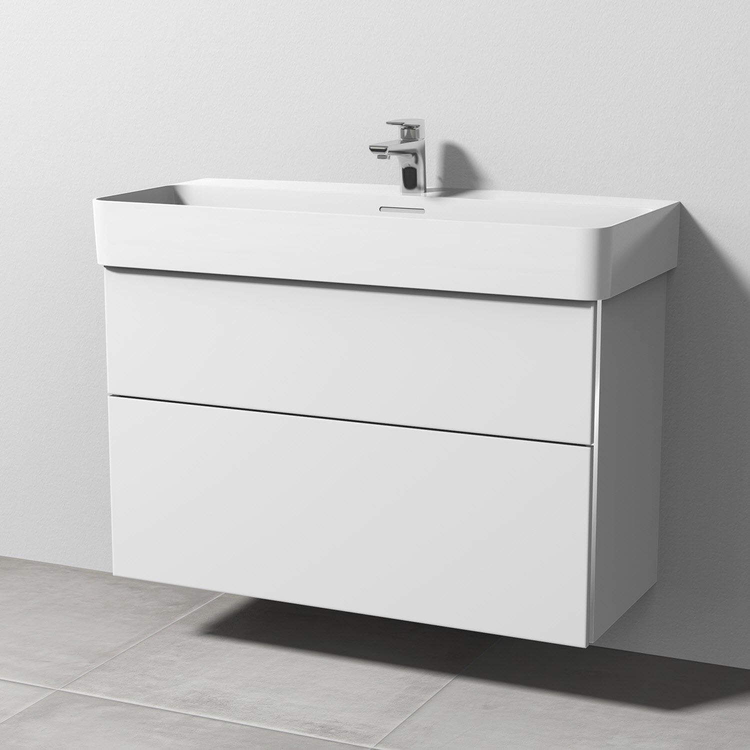 Sanipa 3way Waschtischunterbau für Keramik-Waschtisch Val 95 cm, 2 Auszüge mit Griffleisten