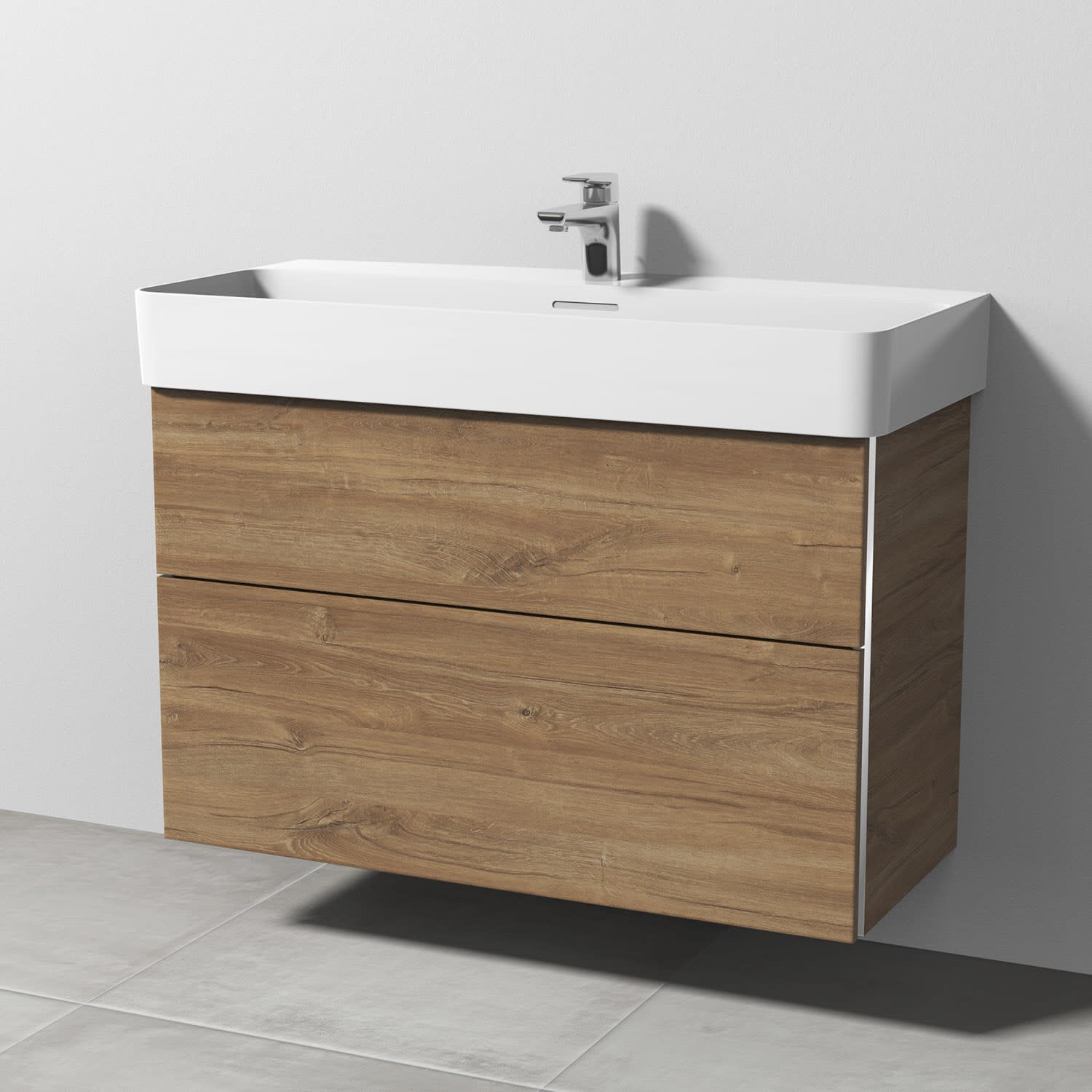 Sanipa 3way Waschtischunterbau für Keramik-Waschtisch Val 95 cm, 2 Auszüge mit Griffleisten
