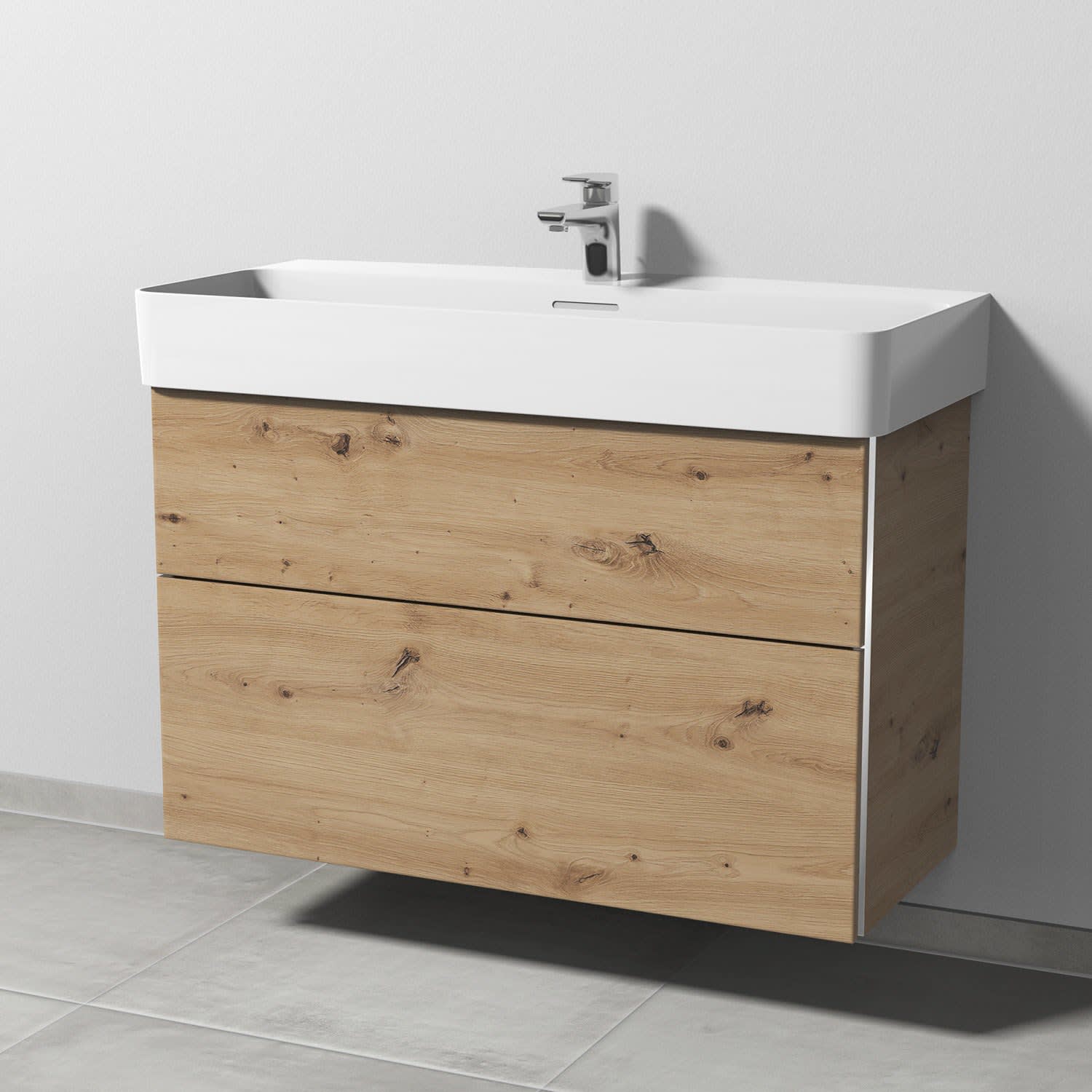 Sanipa 3way Waschtischunterbau für Keramik-Waschtisch Val 95 cm, 2 Auszüge mit Griffleisten