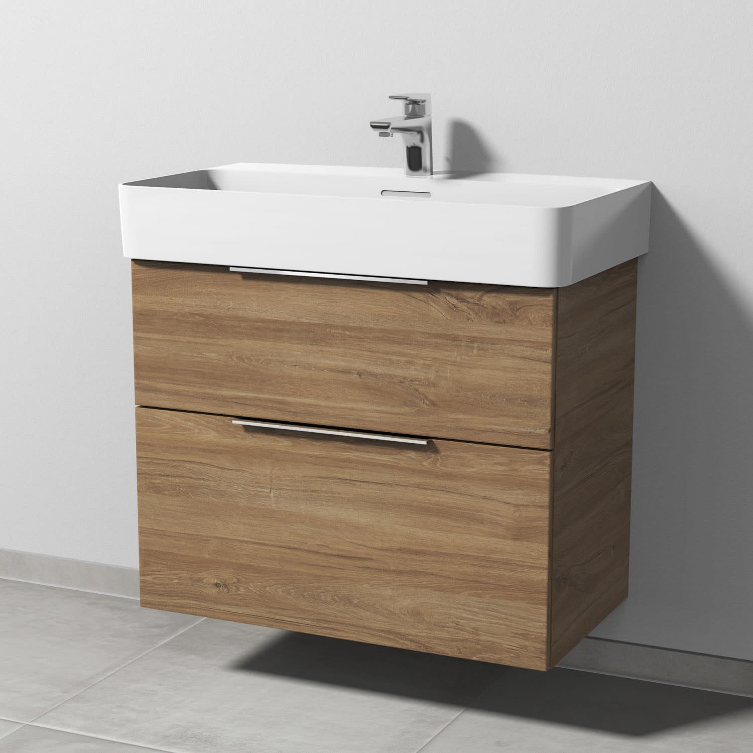 Sanipa 3way Waschtischunterbau für Keramik-Waschtisch Val 75 cm, 2 Auszüge mit Aufsatzgriff