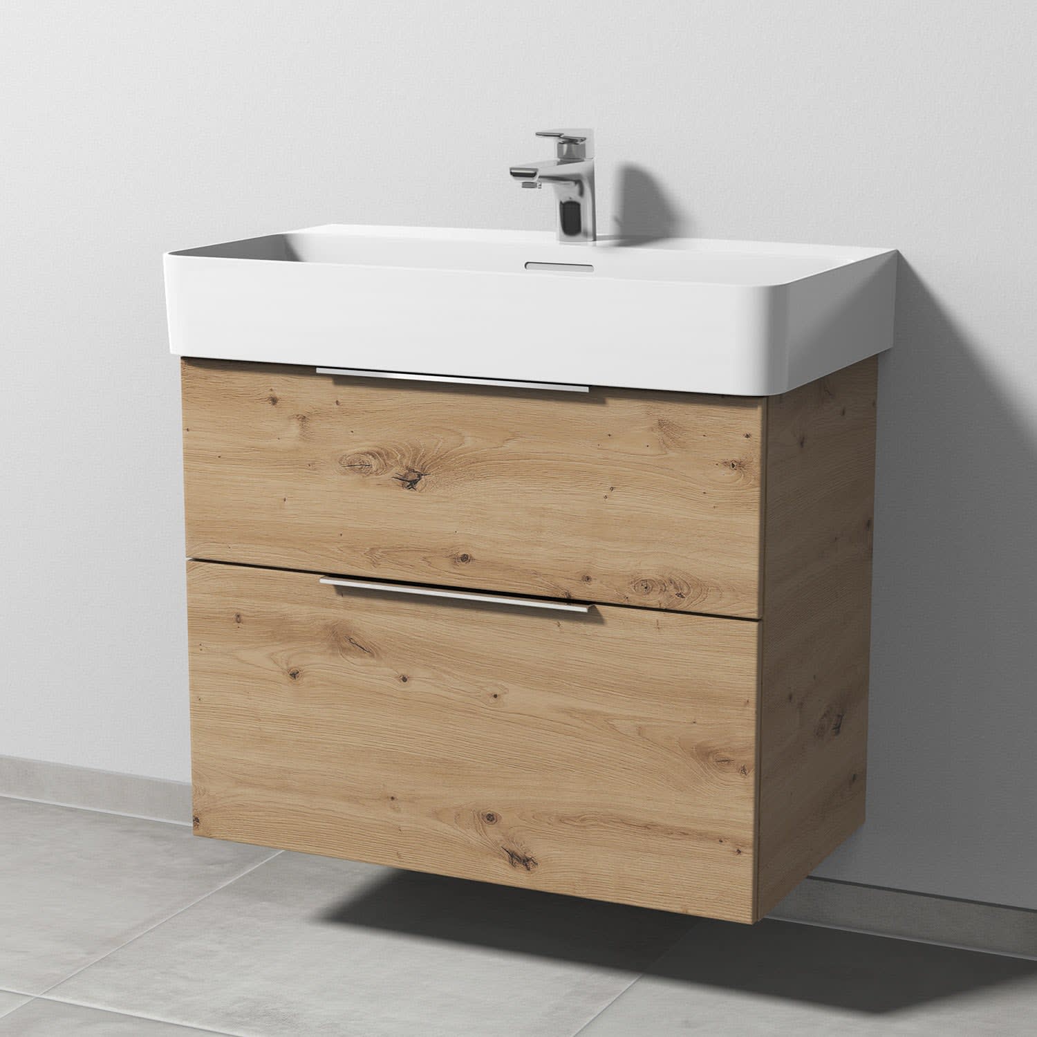 Sanipa 3way Waschtischunterbau für Keramik-Waschtisch Val 75 cm, 2 Auszüge mit Aufsatzgriff