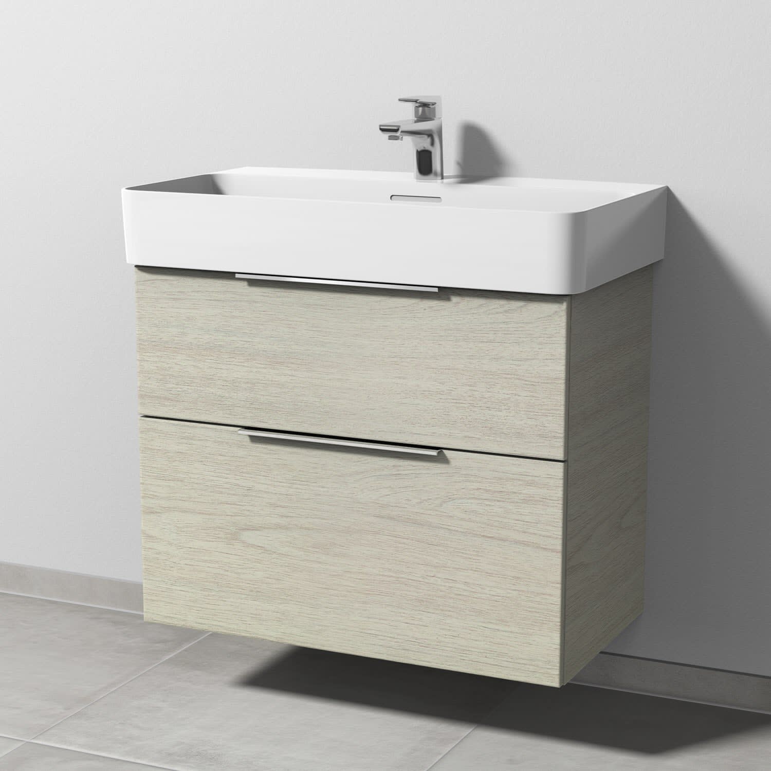 Sanipa 3way Waschtischunterbau für Keramik-Waschtisch Val 75 cm, 2 Auszüge mit Aufsatzgriff