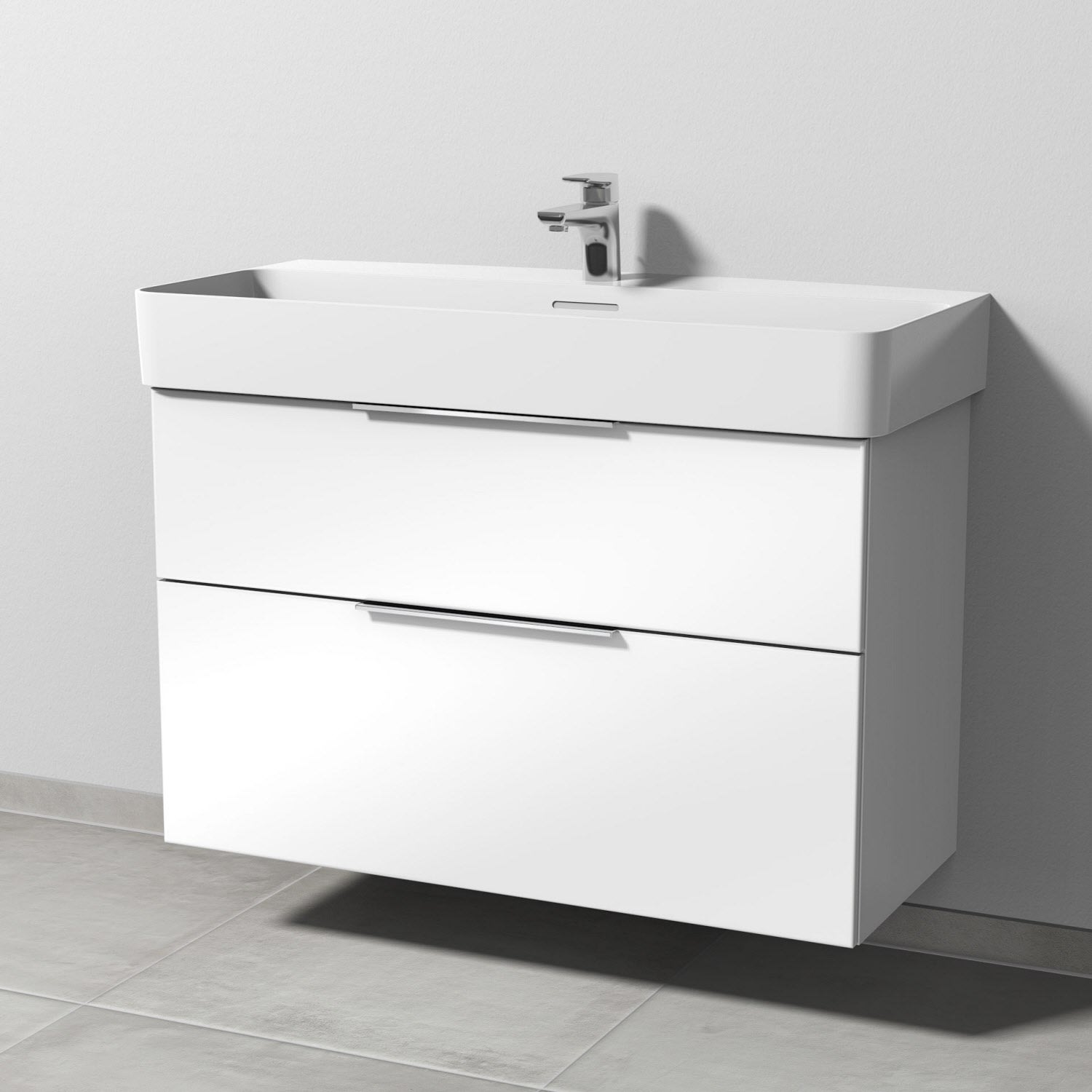 Sanipa 3way Waschtischunterbau für Keramik-Waschtisch Val 95 cm, 2 Auszüge mit Aufsatzgriff