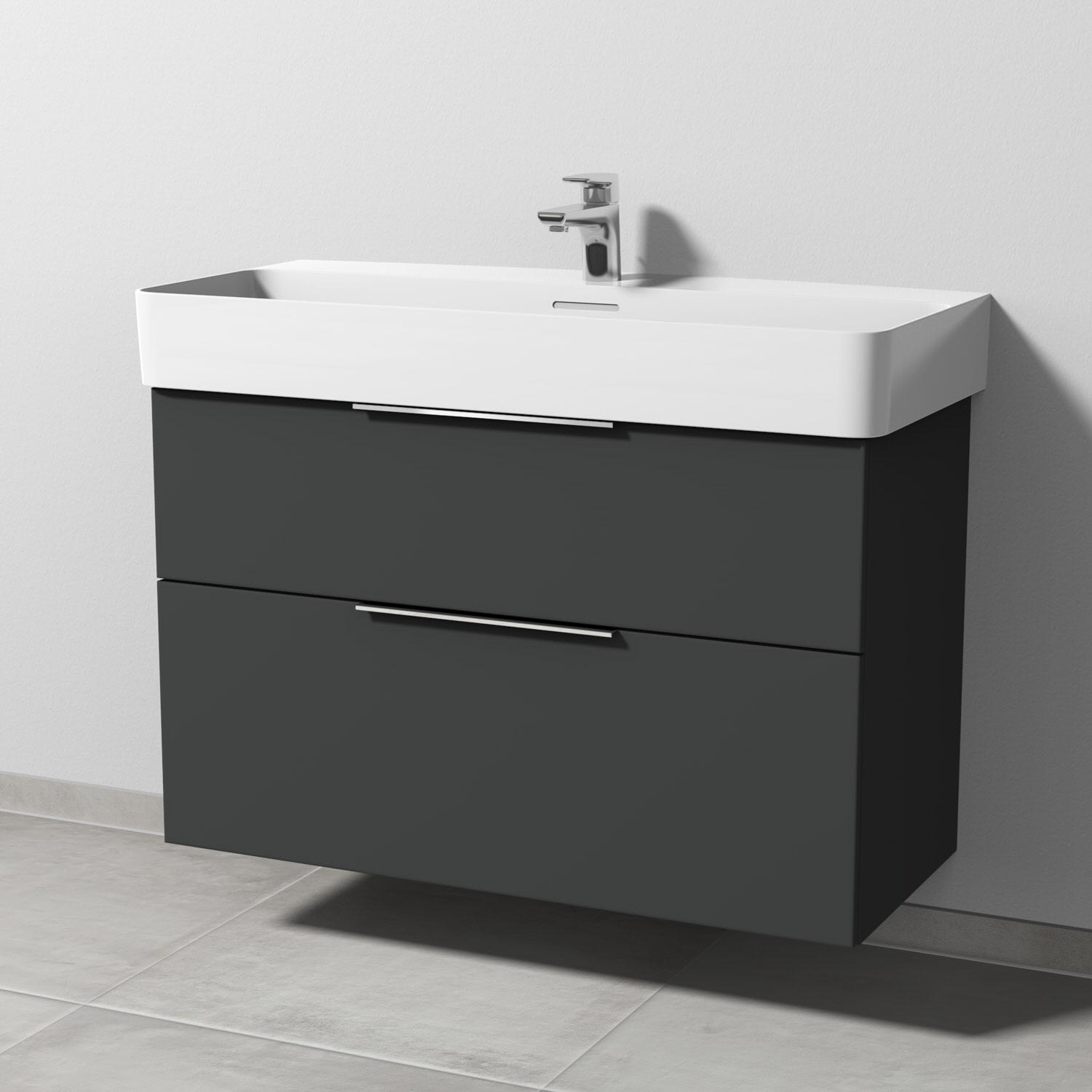Sanipa 3way Waschtischunterbau für Keramik-Waschtisch Val 95 cm, 2 Auszüge mit Aufsatzgriff