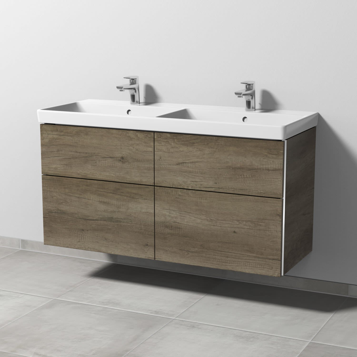 Sanipa 3way Waschtischunterbau für Keramik-Doppelwaschtisch Avento 120 cm, 4 Auszüge mit Griffleisten
