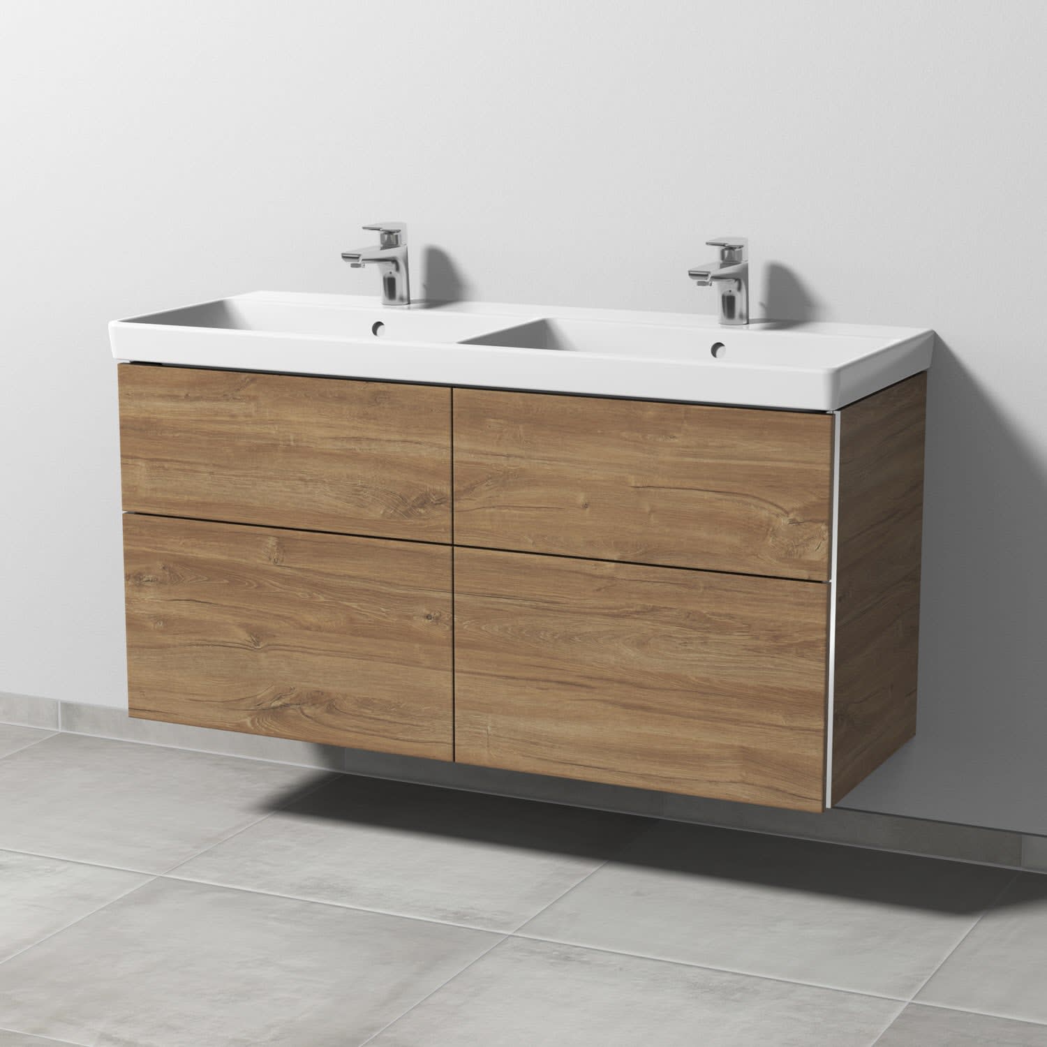 Sanipa 3way Waschtischunterbau für Keramik-Doppelwaschtisch Avento 120 cm, 4 Auszüge mit Griffleisten