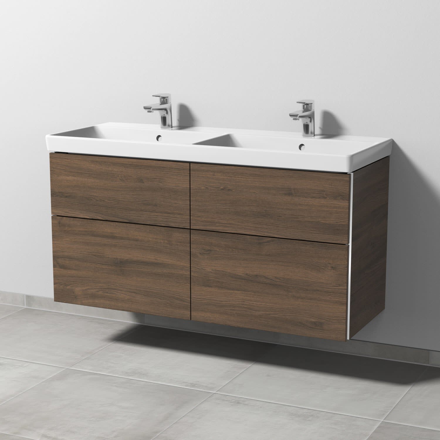 Sanipa 3way Waschtischunterbau für Keramik-Doppelwaschtisch Avento 120 cm, 4 Auszüge mit Griffleisten