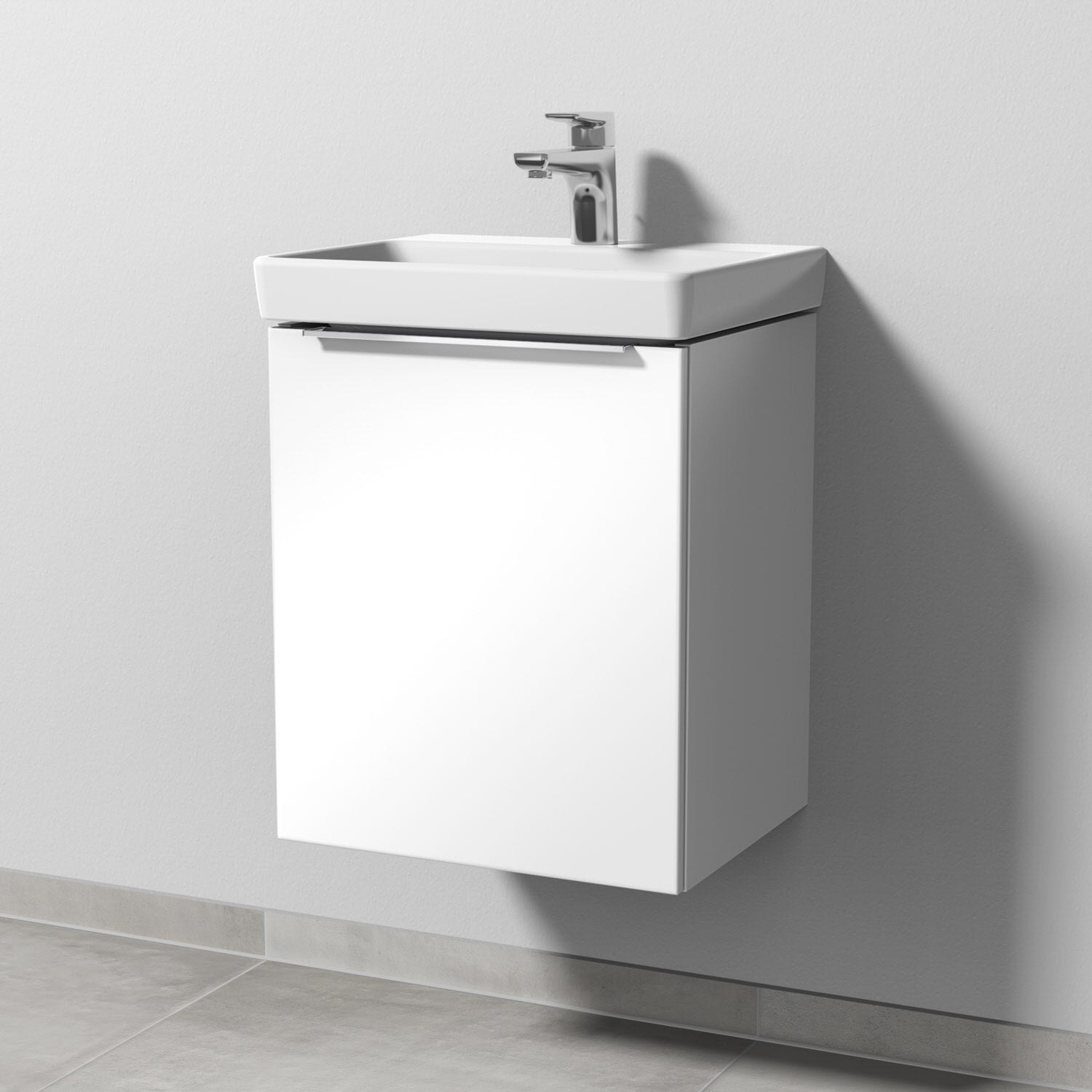 Sanipa 3way Waschtischunterbau für Keramik-Waschtisch Avento 45 cm, 1 Tür, Anschlag links, mit Aufsatzgriff